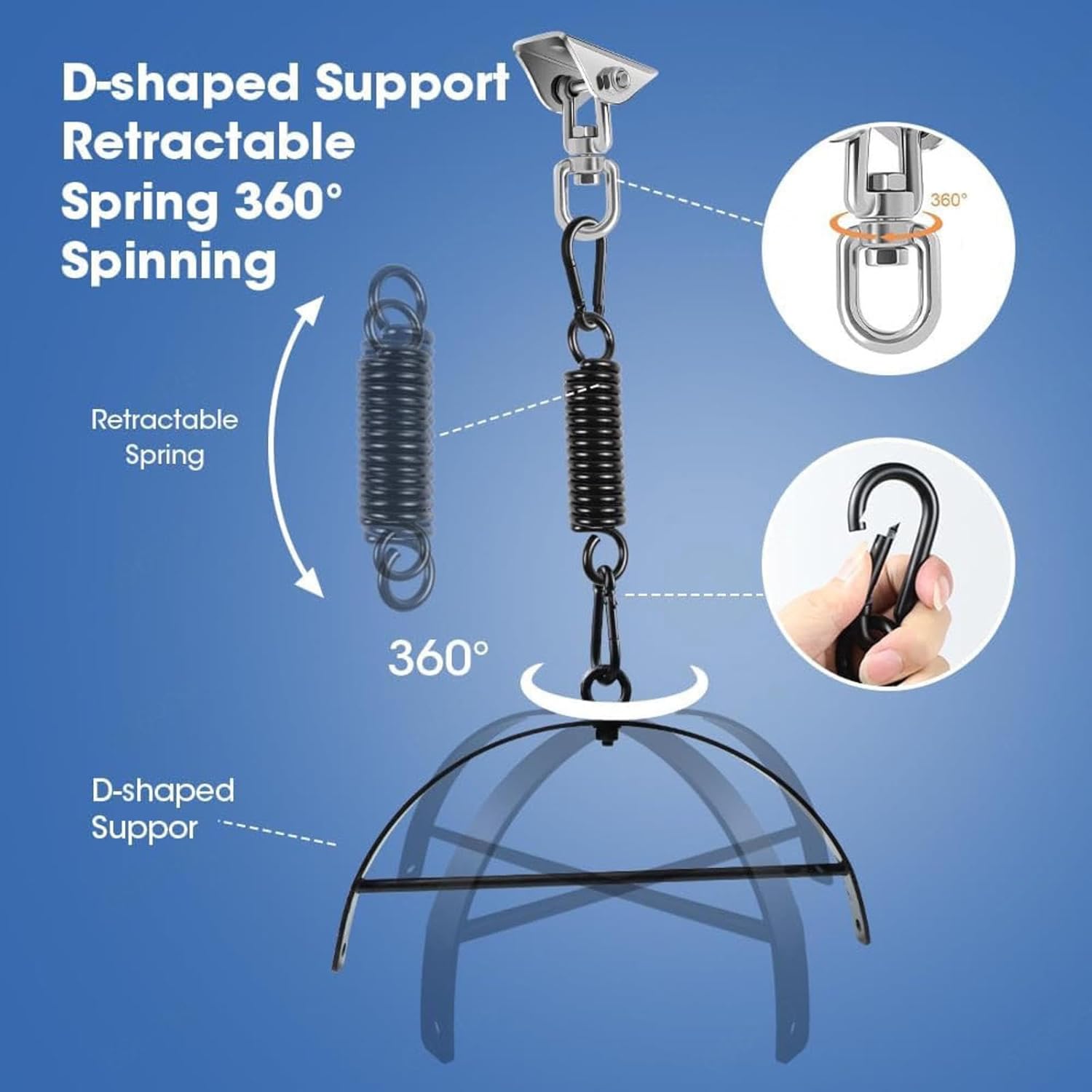 1. Materiale: fettuccia in nylon + metallo 2. La lunghezza dell'altalena è regolabile e la fettuccia in nylon è facile da pulire. 3. Se hai domande, non esitare a contattarci e risponderemo al messaggio entro 24 ore.