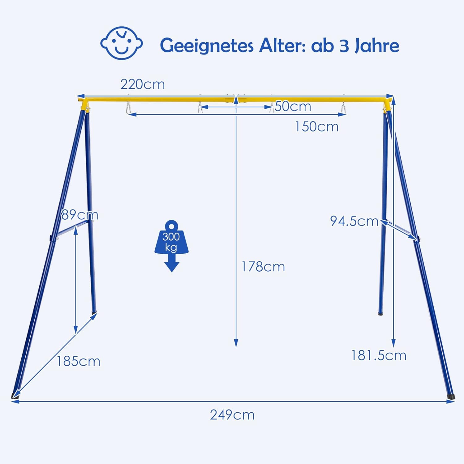 ☀️ Costruzione robusta e sicura: il doppio telaio oscillante a forma di A è realizzato in robusto acciaio e può sostenere fino a 300 kg. Inoltre, il baricentro ottimale e i montanti garantiscono stabilità e sicurezza di bambini e adulti. ☀️ Set altalena regolabile in altezza in 2 pezzi - Questo set da 2 include 1 altalena e 1 altalena a nido. Grazie alle corde regolabili, l'altezza dell'altalena nido può essere facilmente regolata da 90 cm a 160 cm. ☀️ Materiali selezionati - Grazie alle cuciture solide, al tessuto traspirante e al robusto acciaio, questa altalena doppia può essere utilizzata a lungo. ☀️ Per interni ed esterni - L'altalena per bambini è di alta qualità e può quindi essere utilizzata all'aperto. I 4 picchetti garantiscono una maggiore stabilità. Grazie ai 4 sottobicchieri antiscivolo è utilizzabile anche in casa. ☀️ Facile da montare - Grazie alle istruzioni dettagliate e agli accessori inclusi, montare il telaio dell'altalena è semplice.
