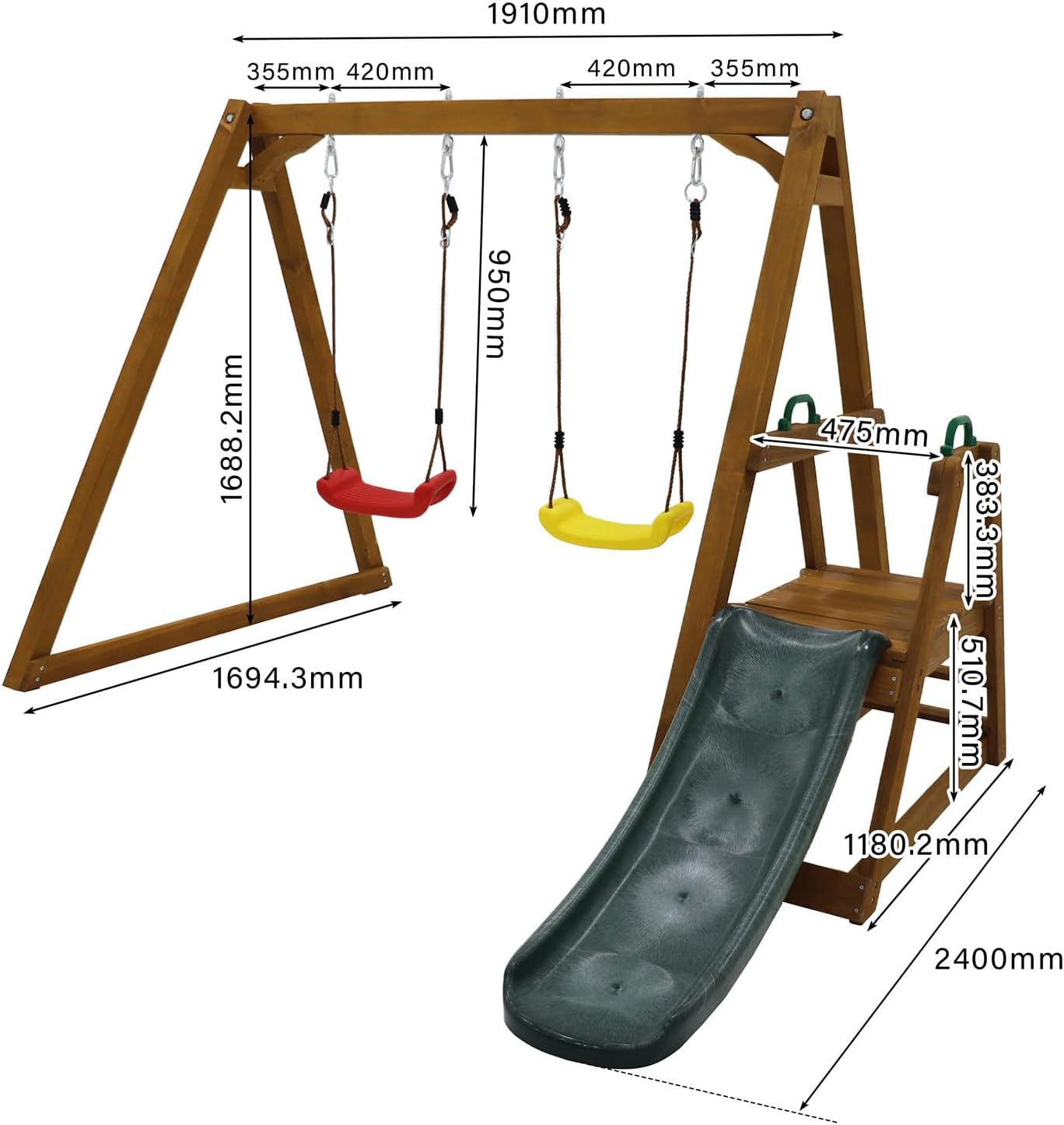 【Materiali di alta qualità】: Questa altalena doppia per bambini è realizzata in legno massello spesso 9 cm, con una portata massima di 50 kg e una durata maggiore rispetto al metallo. 【Intrattenimento multifunzionale】: Una robusta altalena per bambini con scivolo e scaletta. I 2 seggiolini sono adatti a famiglie con due bambini o amici per interagire. Prestare attenzione alla presenza di una ringhiera di sicurezza per bambini. 【Design di sicurezza】: Questa altalena da giardino per esterni utilizza legno spesso + struttura anti-ribaltamento, design anti-pizzicamento della catena/corda dell'altalena, angoli arrotondati sul bordo dello scivolo, sicuro e affidabile. 【Valore di crescita】: I movimenti di arrampicata e oscillazione possono esercitare la forza del core dei bambini, lo sviluppo vestibolare e il coraggio, adatti a far sviluppare equilibrio, coordinazione e forza al bambino. 【Scala di arrampicata + Scivolo】: Promuove lo sviluppo di movimenti ampi e lo scivolo ha un rivestimento anti-UV per ritardare l'invecchiamento. Può anche evitare il rischio di ustioni estive e offre la massima qualità e sicurezza.