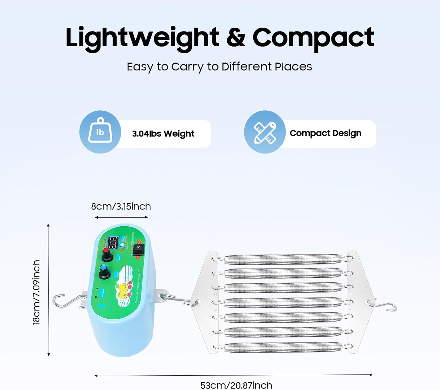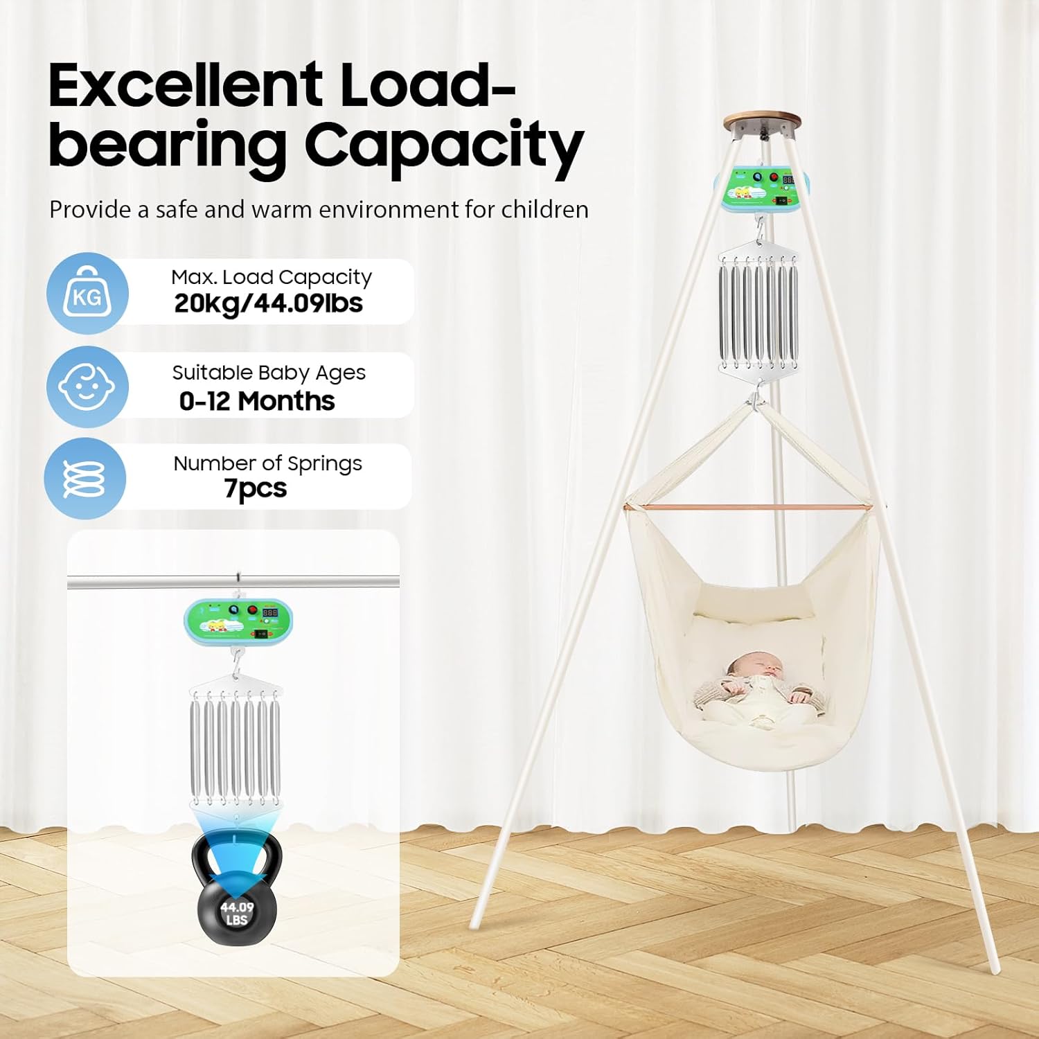 【Impostazioni regolabili】La molla basculante automatica offre un controllo del volume a 10 livelli per la musica e le impostazioni di oscillazione a 10 livelli, dalle vibrazioni fluide ai movimenti giocosi. Il timer da 60-240 minuti consente un pisolino o un gioco senza stress e garantisce comfort senza monitoraggio costante. Forte capacità di carico: con una capacità di carico massima di 44,09 libbre, può ospitare in modo sicuro la maggior parte dei bambini di età compresa tra 0 e 12 mesi, in modo che i genitori possano usarlo con sicurezza. Funzionamento efficiente: consuma solo 12 W di corrente, questo motore elettrico a molla per altalena è una scelta ecologica e conveniente. Consente periodi di tempo più lunghi senza preoccuparsi di alti costi di energia elettrica. Leggero e compatto: con il suo peso ridotto (3,04 libbre) e le dimensioni relativamente compatte, questo prodotto è portatile e facile da maneggiare, quindi è comodo da riporre quando non in uso ed è facile da trasportare tra stanze o luoghi diversi. Facile da installare: la struttura semplice e i ganci attrezzati consentono di appenderlo nella posizione corretta e di utilizzarlo rapidamente.