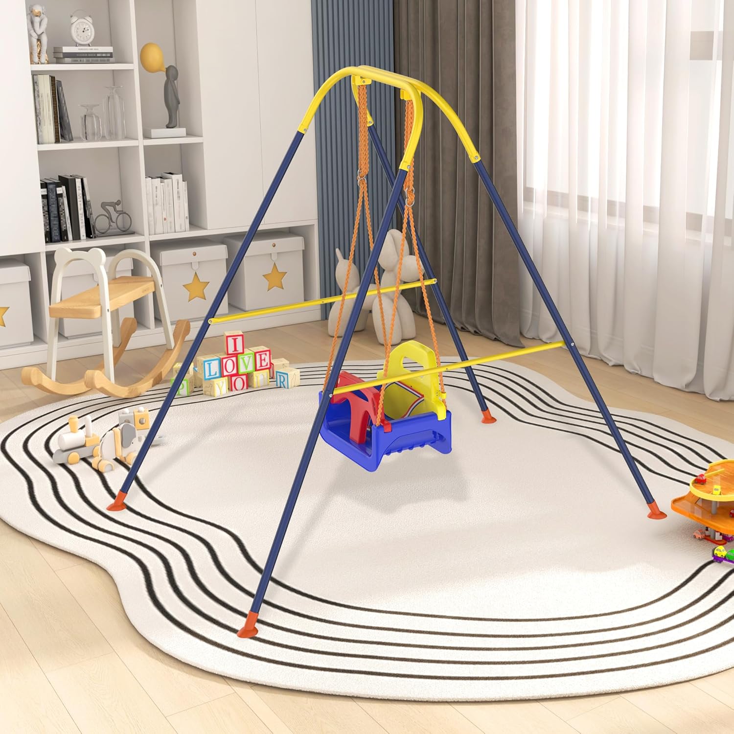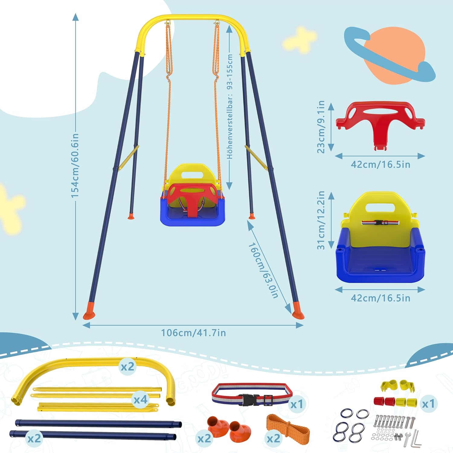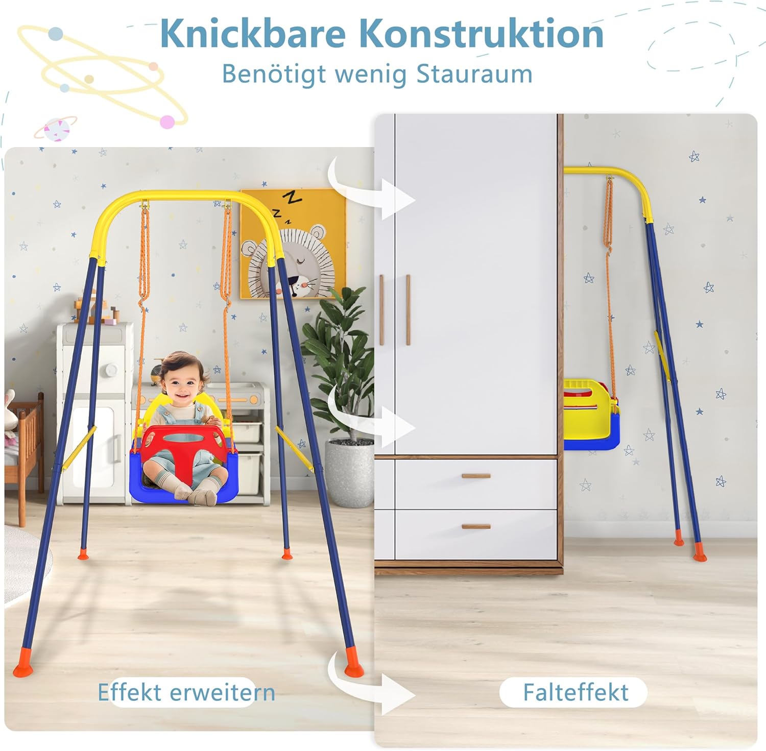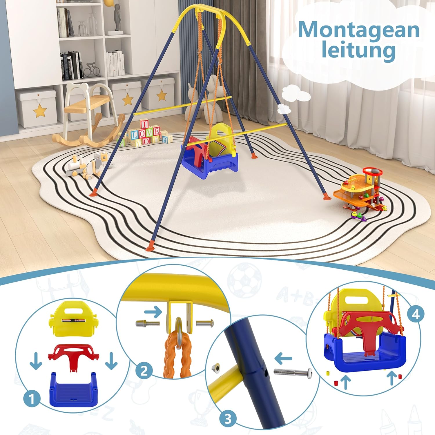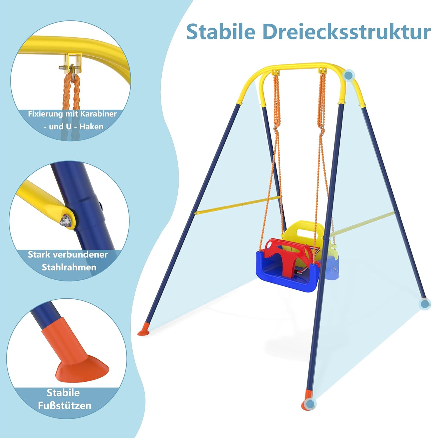 Design 3 in 1: l'altalena si adatta al tuo bambino! Grazie al sedile regolabile e rimovibile, è ideale per bambini dai 6 mesi ai bambini più grandi fino a 10 anni. Questo concetto flessibile risponde alle mutevoli esigenze del vostro bambino e garantisce sempre un divertimento ottimale a dondolo Struttura stabile e sicura: dotata di un robusto design triangolare, questa altalena offre un'elevata stabilità e una capacità di carico fino a 40 kg. La struttura anti-ribaltamento e la cintura di sicurezza proteggono il bambino da possibili incidenti, per la massima sicurezza Promuove il gioco attivo e l'esercizio fisico: questo dondolo porta i bambini in movimento, rafforza la loro attività fisica e le capacità motorie. Non solo un dispositivo divertente, ma anche uno strumento prezioso per uno sviluppo sano e una migliore coordinazione Compatto e salvaspazio: il telaio pieghevole in metallo consente di riporlo facilmente quando l'altalena non è in uso. Grazie al design intelligente, si adatta anche a piccoli spazi, ideale per interni ed esterni, versatile Montaggio facile e veloce: con le istruzioni dettagliate e chiare si monta l'altalena in pochi minuti. Un'esperienza familiare pratica: i bambini possono anche aiutare a costruire per rafforzare le loro abilità pratiche e trascorrere del tempo prezioso con la famiglia