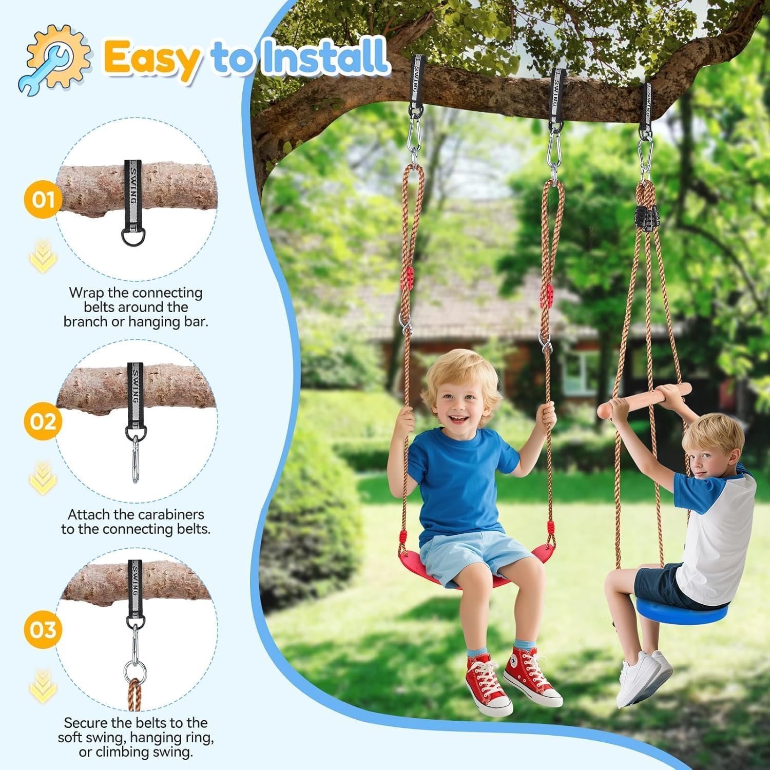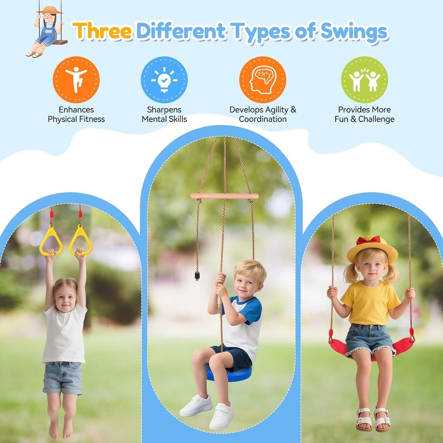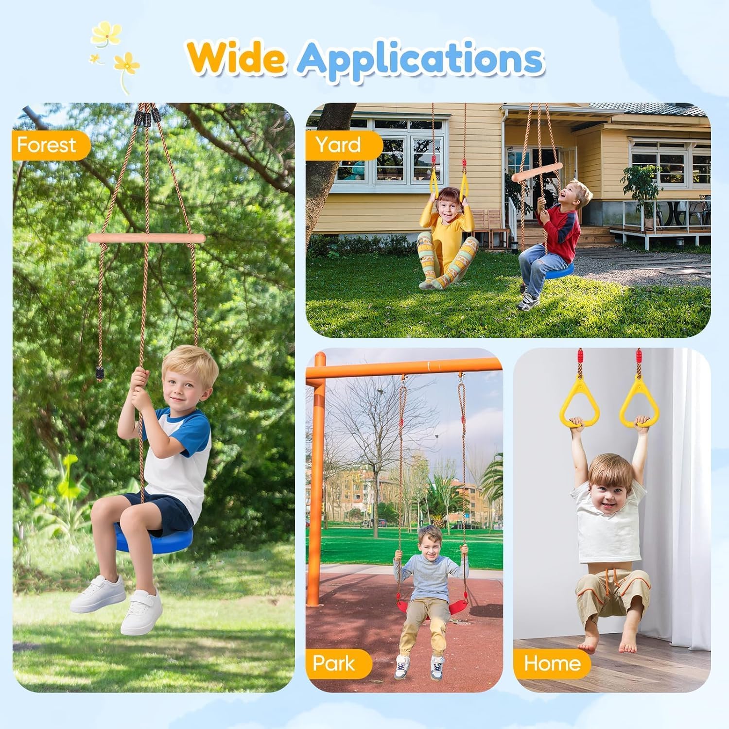 Altalena per bambini Questa altalena in corda da arrampicata combina un sedile piatto antiscivolo e piattaforme colorate per arrampicarsi, incoraggiare i bambini ad arrampicarsi, oscillare ed equilibrio. Rafforza la fiducia e migliora la coordinazione occhio-mano attraverso il gioco attivo. Installazione rapida e sicura: la robusta cinghia di collegamento inclusa e il robusto moschettone consentono un montaggio rapido e sicuro. Basta appendere l'altalena su un albero, altalena o bar palestra e trasformare qualsiasi stanza, cortile o giardino in un parco giochi. ADATTABILE PER I BAMBINI IN CRESCITA Regolare l'altezza in pochi secondi: avvolgere la cinghia di collegamento per accorciarla per i bambini più alti, o appenderla completamente per estenderla per i bambini più piccoli. Giocattolo ideale per arrampicata e dondolo per bambini in crescita. RESISTENTE Questa altalena realizzata in corda spessa e resistente e con piattaforme antiscivolo supporta fino a 150 kg. Le piattaforme impermeabili possono resistere al sole e alla pioggia per anni e garantiscono sicurezza durante il gioco attivo. Un regalo amorevole per i bambini. Questa altalena colorata è ideale per compleanni o vacanze e incoraggia il gioco all'aperto e l'esercizio fisico. In questo modo, i bambini possono prendersi una pausa dallo schermo e fare attività fisica in modo divertente.