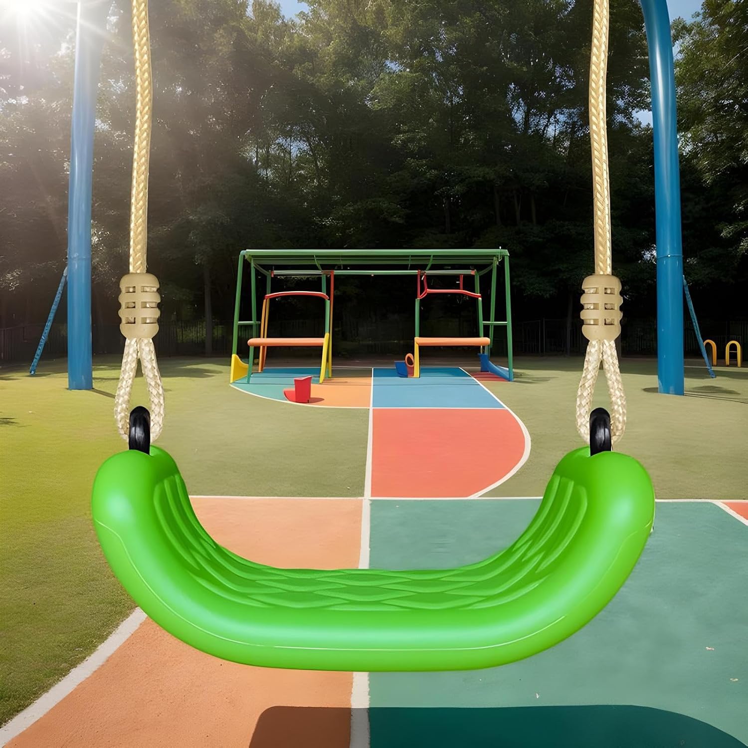 Adattabilità Ottimale: Ideale per ogni ambiente domestico, l'altalena per bambini include regolazione lunghezza corde e impostazioni altezza individuali, garantendo montaggio rapido su alberi, strutture portatili e supporti da interno. Posizionamento semplificato:Design immediatamente operativo, elimina operazioni di perforazione e garantisce montaggio rapido su porte e tronchi d'albero con adattamento automatico Design Pratico:Progettata per giardini e aree verdi pubbliche, supporta il gioco interno ed esterno. Fornisce divertimento senza interruzioni in ogni stagione con transizioni fluide tra ambienti. Stabilità Sicura: Ampia forma ergonomica abbinata alla superficie antiscivolo assicura sostegno stabile durante i giochi dinamici, promuovendo sicurezza e controllo nell'utilizzo di questa altalena per bambini. Materiale di Qualità: Struttura portante affidabile realizzata con materiali resistenti, garantisce durabilità all'aperto mantenendo forma e robusta nel con eccellente resistenza all'usura