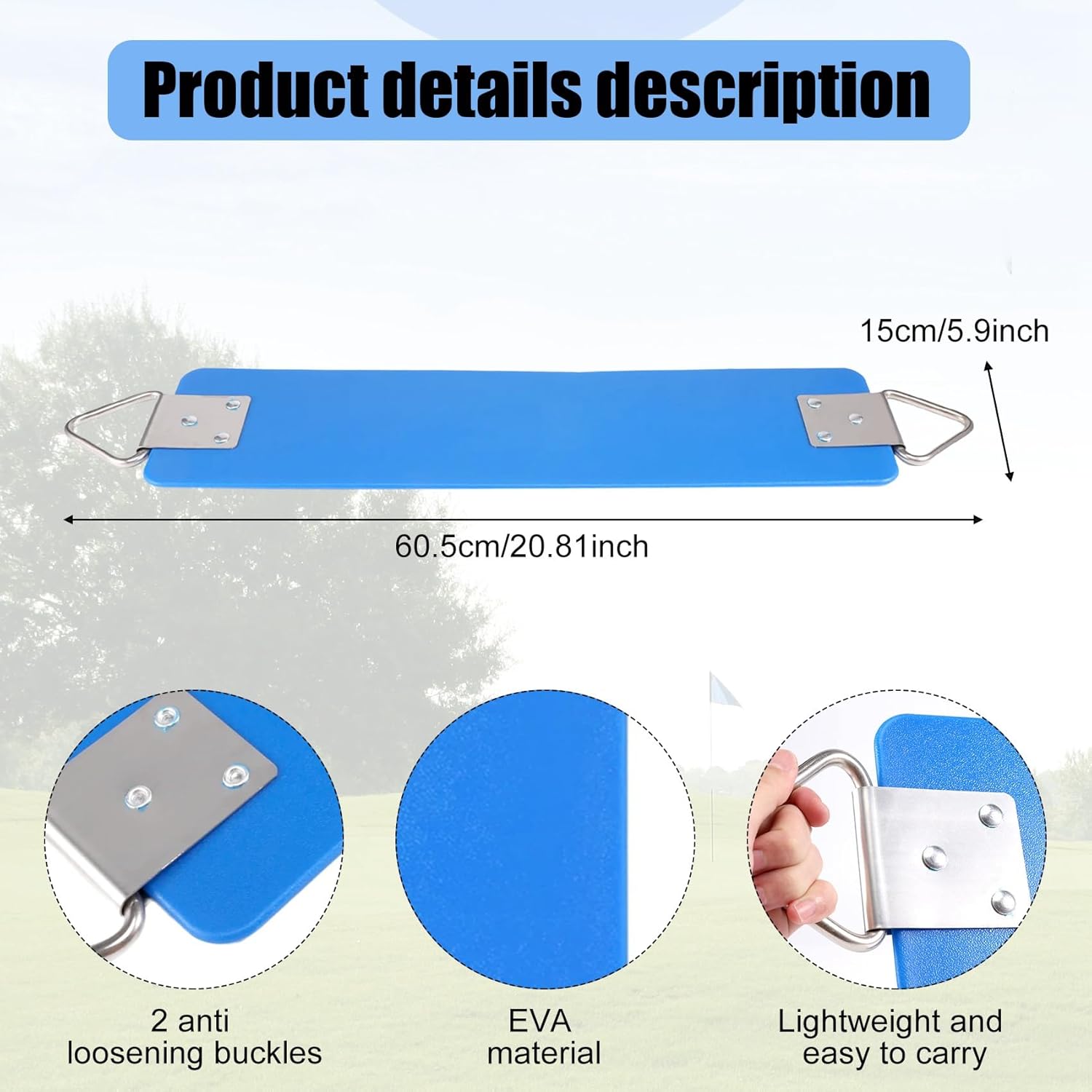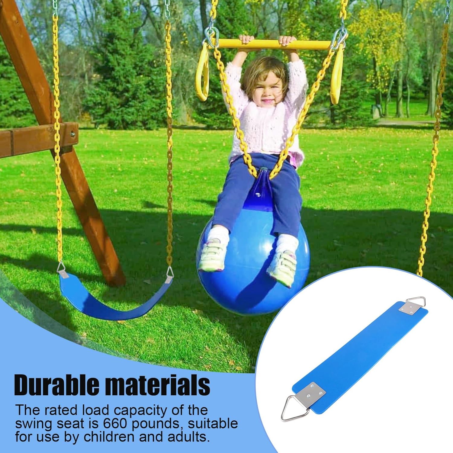 [Garanzia di qualità] Come il suo nome, questa sedia a dondolo è stata realizzata con parti e materiali per impieghi gravosi per garantire ore di divertimento e di gioco. Il da altalena per servizio pesante è valutato per contenere fino a 660 libbre, abbastanza forte per bambini e adulti. [Join in Together] Il seggiolino altalena misura 60,5 * 15 * 0,8 cm. Con un design 'imbragatura più ampio e una capacità di 660 libbre, questa altalena estremamente confortevole può facilmente ospitare bambini o genitori. [Accessori completi] Rispetto ad altri elenchi, offriamo molte opzioni di accessori, puoi scegliere un set completo o puoi scegliere quello che ti manca per sostituire o aggiornare il tuo vecchio swing. [Tempo libero] Avere un'altalena nel tuo giardino non è così costoso o faticoso, ma una semplice diversione per uccidere il tuo tempo libero. Anche un giocattolo meraviglioso per i bambini della tua famiglia.