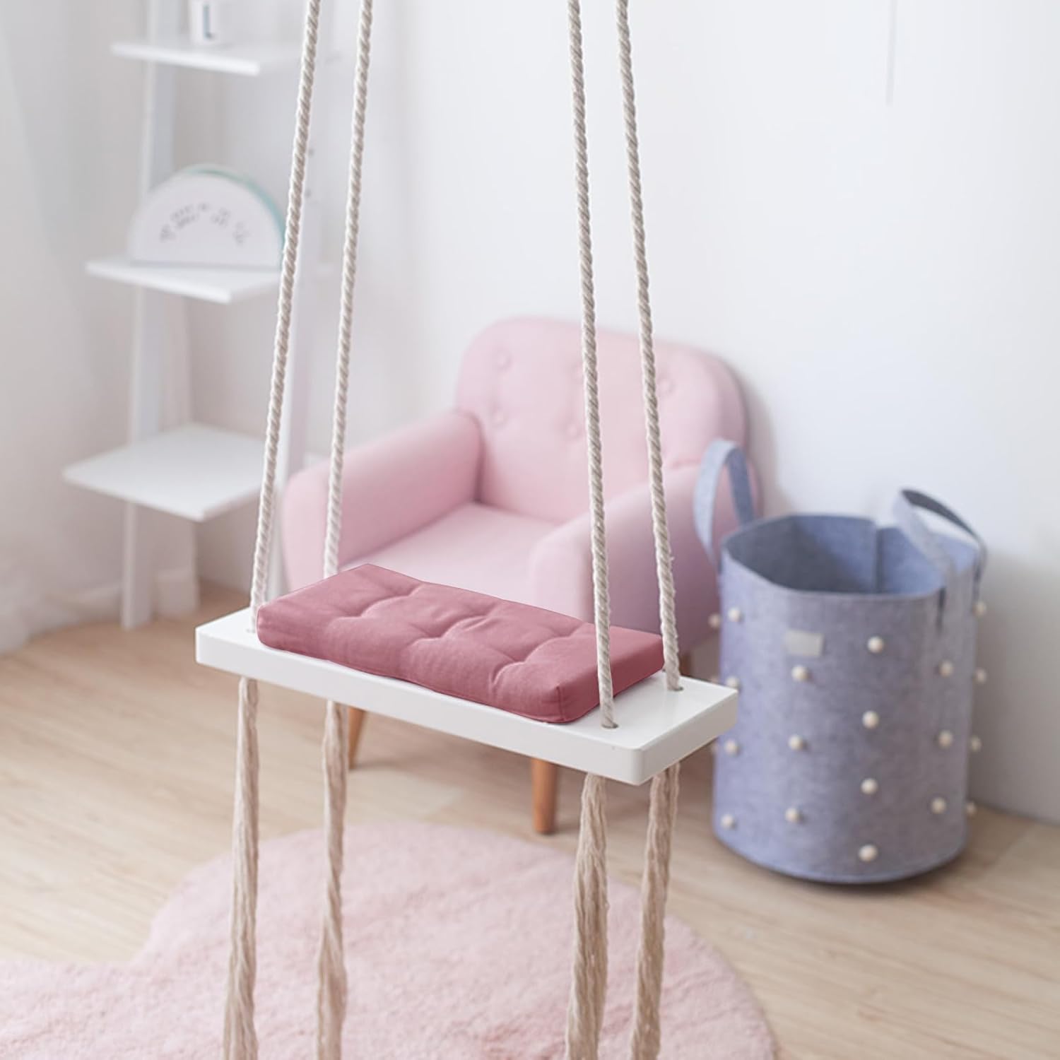 Altalena in legno per bambini: l'altalena per bambini è realizzata in legno massello, che è forte e durevole. Le corde sono realizzate con corde di canapa ispessite, che sono più forti delle normali corde di canapa, in modo che il bambino sia completamente protetto durante il gioco. Esperienza confortevole: il cuscino dell'altalena è avvolto in tessuto di alta qualità, morbido e delicato sulla pelle. Il cuscino utilizza cuscinetti in spugna ispessita, più spessa rispetto ai cuscini in spugna sul mercato, seduti su di esso è molto comodo. Sicurezza: altalena da giardino con corde in sisal ispessite, le corde in sisal dell'altalena sono ispessite e lavorate, più stabili e durevoli. La superficie delle corde di canapa è strettamente pressata, non ha impurità in eccesso e non stringerà le mani. Ampia gamma di applicazioni: l'altalena per bambini è versatile e adatta per interni ed esterni. L'altalena può essere posizionata su parchi giochi, all'aperto, giardini, palestre, studi fotografici, stanze dei bambini, asili nido e altri luoghi. Dimensioni e carico: il sedile dell'altalena 50 x 18 x 3,5 cm. È progettato per bambini con un peso massimo di 50 kg.