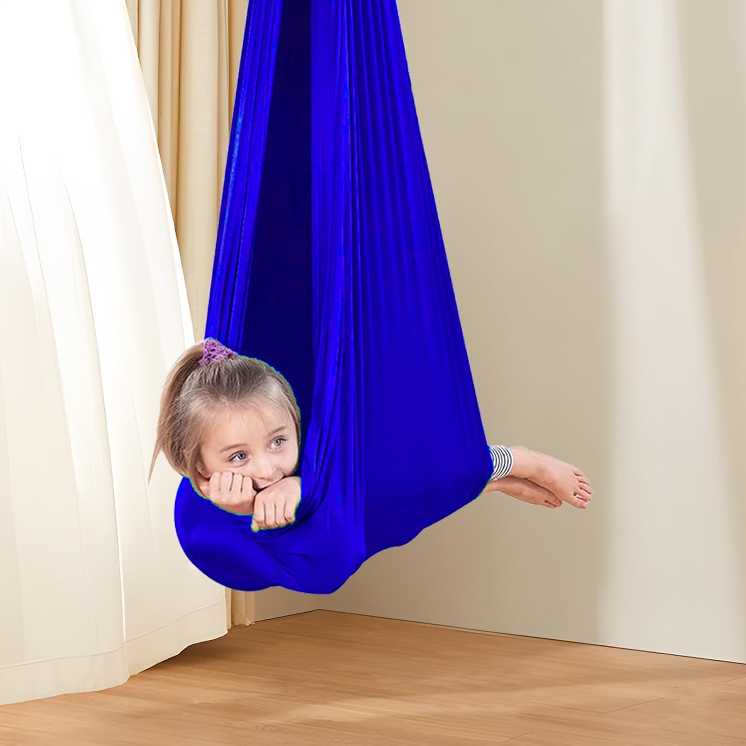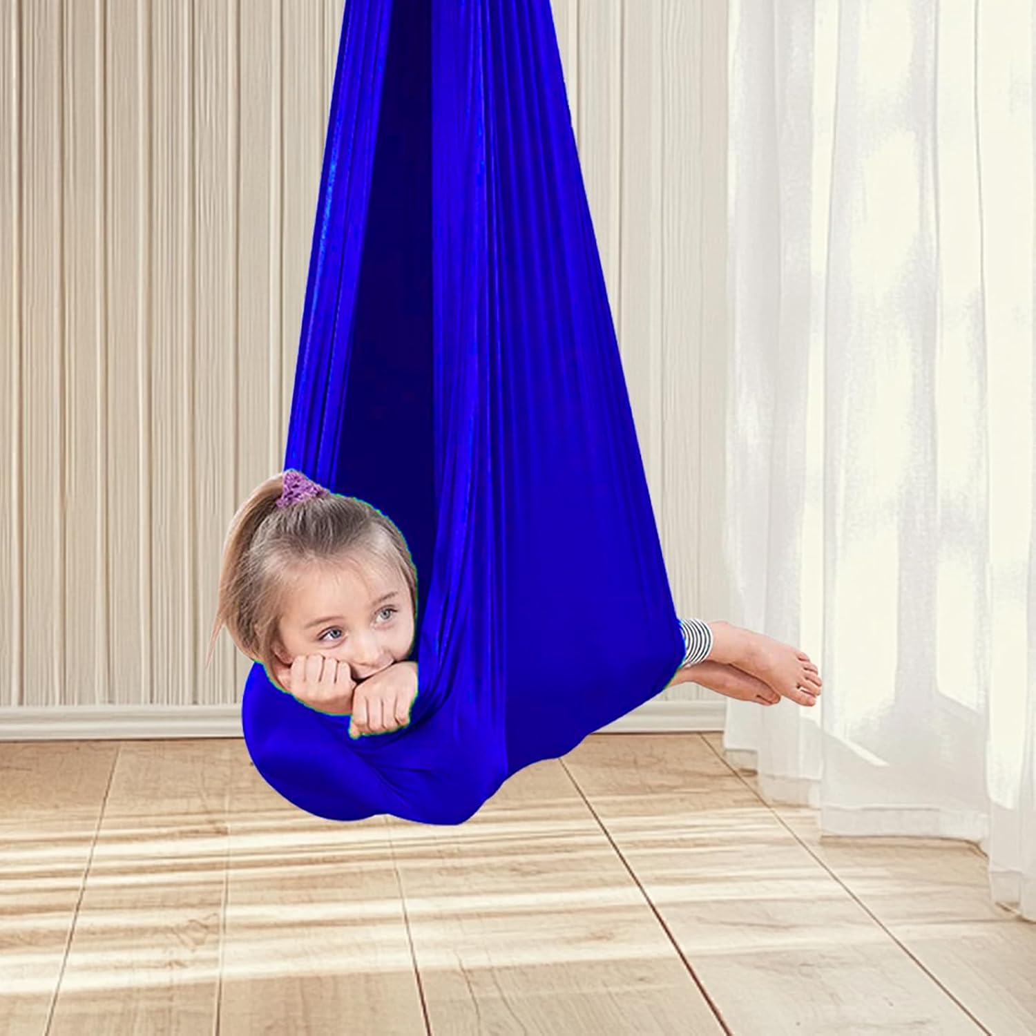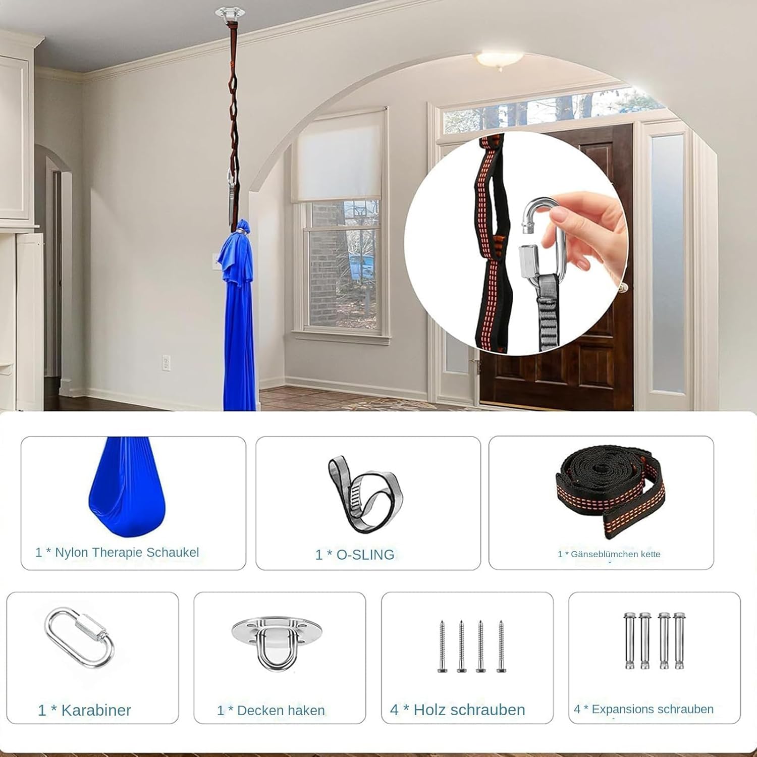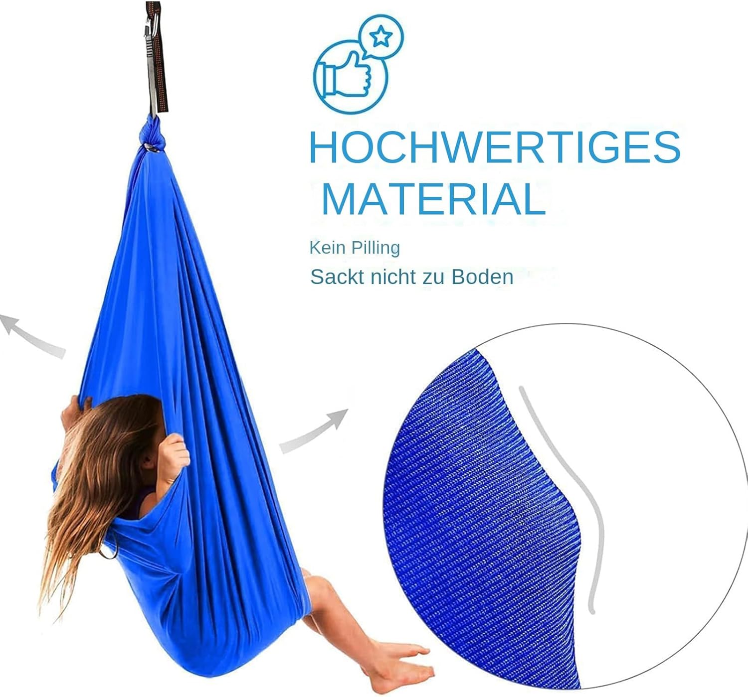 Soluzione pratica: appositamente progettata con tessuti traspiranti ed elastici che danno una tenuta delicata. Il design lavabile con funzione reversibile consente una facile pulizia e un uso versatile nella vita di tutti i giorni Struttura robusta del telaio: moschettoni in metallo rinforzato con funzione girevole a 360 e sistema di sospensione a 4 punti che garantiscono movimenti oscillanti silenziosi, seduta antiscivolo con inserto in rete traspirante Veloce da usare: l'altalena Sensory si fissa rapidamente a soffitti o alberi. Montaggio semplice senza elementi complicati per un utilizzo flessibile in interni e giardini Posizionabile in modo flessibile: sistema di montaggio universale si adatta a tutte le porte standard (78-90 cm) e alle strutture a soffitto. Le cinghie regolabili con rotazione a 360 consentono l'installazione in ambienti fino all'altezza Comfort tutto l'anno: altalena Sensory resistente alle intemperie per terapia e tempo libero, offre un'oscillazione delicata fino a 200 kg – perfetto per l'allenamento sensoriale di integrazione, angoli di lettura o oasi di relax nella cameretta dei bambini