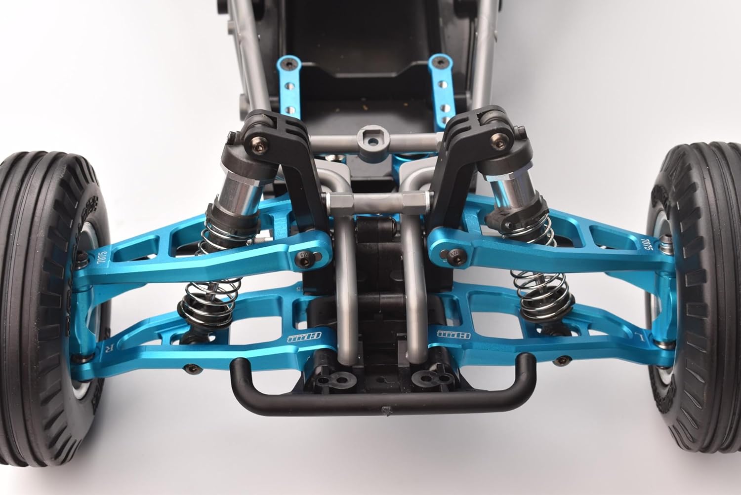 Made from Aluminium 7075 material, lightweight, corrosion resistant and aesthetics. It has a high tensile strength for greater durability when doing extreme RC action Improve the stability and performance your Tamiya R/C. Package includes : Front lower suspension arms-2pcs ; Grade 12.9 black round head screws 3x8-2pcs. Suitable model : Tamiya 1/10 BBX BB-01 Chassis 58719.