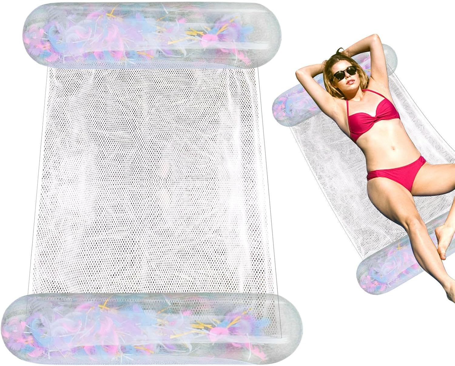 Materiale confortevole: la nostra amaca da piscina è il modo perfetto per sfidare e rilassarsi sull'acqua. È realizzato in tessuto PVC di alta qualità, che rimane luminoso e stabile. È dotato di un sedile in rete rinforzata e di un design ergonomico che si adatta al tuo corpo e ti mantiene fresco. Rilassamento in acqua: con questa amaca puoi facilmente galleggiare e rilassarti in piscina. Si gonfia e sgonfia rapidamente e puoi regolare la pressione dell'aria per il tuo comfort. Il design a prova di perdite mantiene l'acqua fuori e garantisce una maggiore durata. Amaca da piscina 4 in 1: rilassati e gioca nell'acqua, senti il mondo fresco, sfruttalo al massimo o lasciati galleggiare con questa amaca da piscina. A seconda dei tuoi desideri, può essere utilizzata come poltrona, sella, galleggiante o galleggiante. Dimensioni portatili: questa amaca da piscina è leggera e pieghevole, quindi puoi metterla nella borsa e portarla con te in qualsiasi piscina o con te. Dispone inoltre di valvole di gonfiaggio e sgonfiaggio rapido, che facilitano l'installazione e la conservazione. Ampiamente usato: questa amaca da piscina è l'oggetto perfetto per la tua festa estiva. È progettato ergonomicamente per sostenere la testa, il collo e la schiena e alleviare lo stress e la tensione. Puoi gonfiarlo e sgonfiarlo in pochi secondi, risparmiando spazio e tempo. È flessibile e versatile perché puoi usarlo in diversi modi e in diversi luoghi. È perfetto per il lago, la piscina o la piscina.