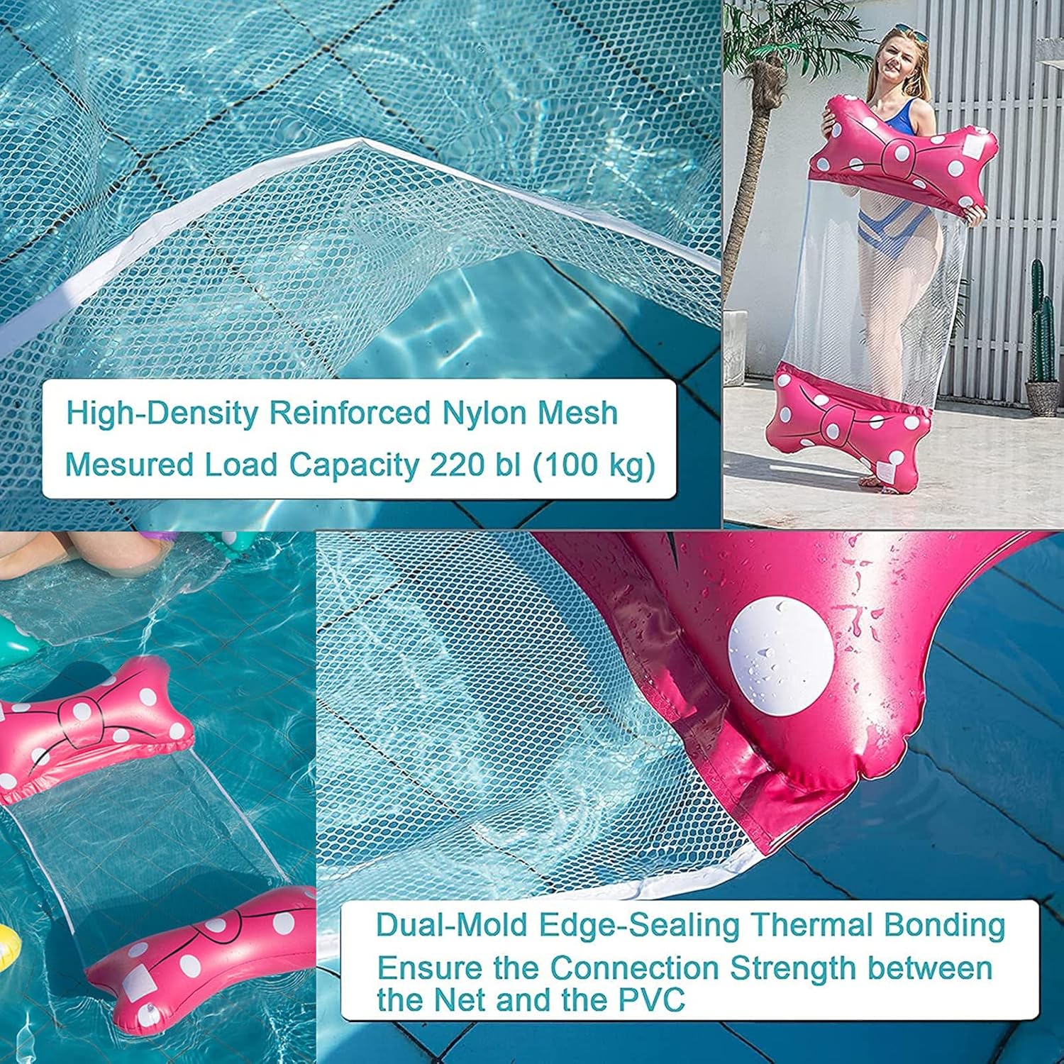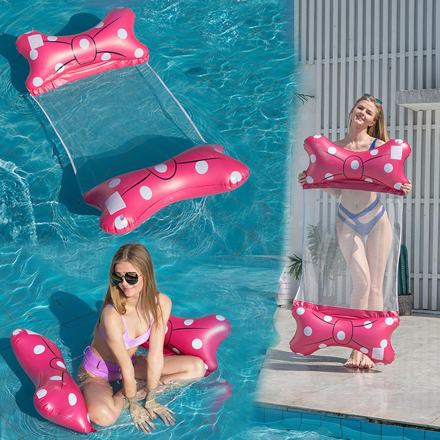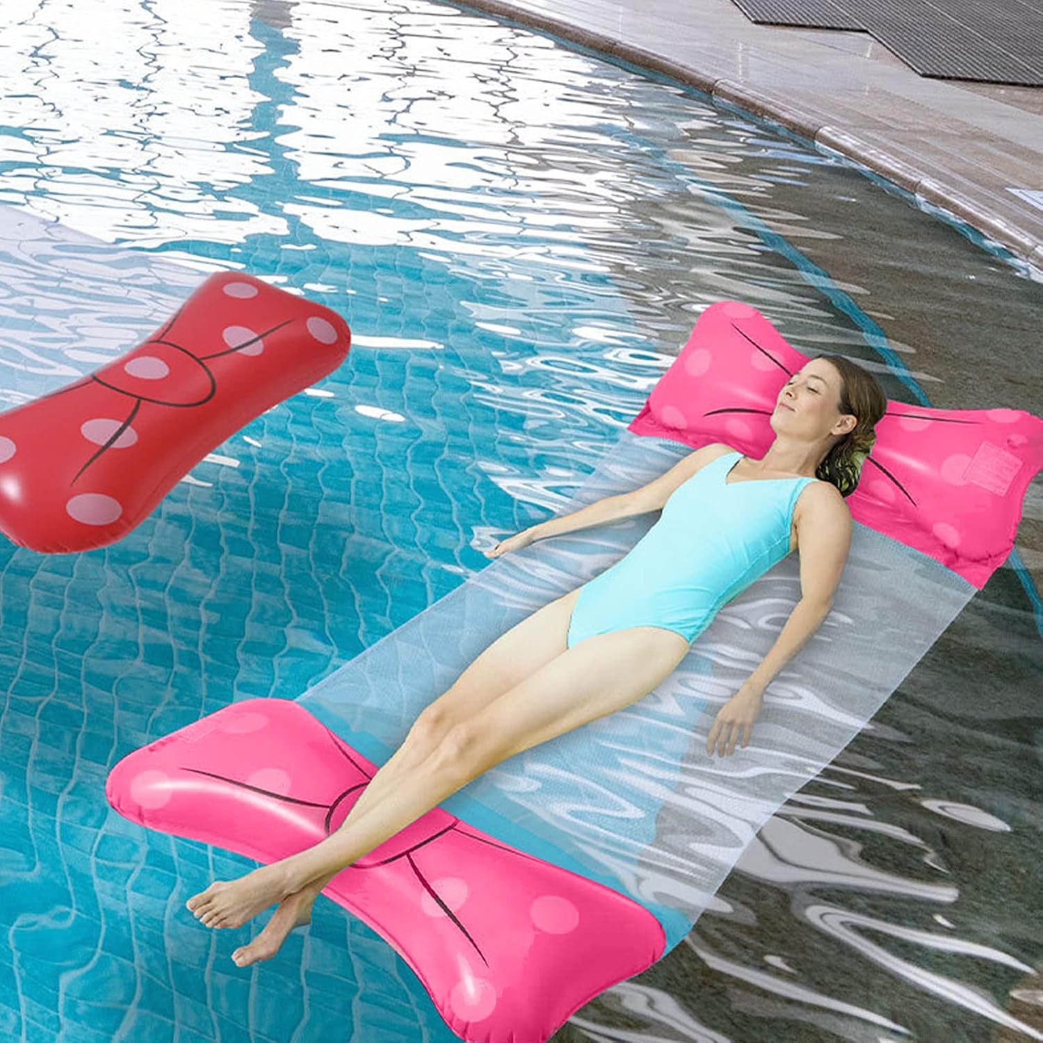 Amaca gonfiabile: goditi il massimo comfort con questa amaca gonfiabile. Perfetto per rilassarsi in spiaggia, in piscina o anche a casa. Facile da gonfiare e sgonfiare per un comodo trasporto. Galleggiante da piscina per adulti: porta un tocco di divertimento alle tue feste in piscina con la nostra boa da piscina per adulti. Galleggia sull'acqua mentre ti godi il sole. Fenicottero gonfiabile: fai una dichiarazione audace con il nostro fenicottero gonfiabile. Una scelta ideale per aggiungere un tocco di stile alle foto delle vacanze o alle feste in piscina. Lettino da piscina gonfiabile: goditi un comfort ottimale con il nostro lettino da piscina gonfiabile. Perfetto per prendere il sole, leggere un libro o semplicemente rilassarsi. Pool Fry: il nostro pool Fry è ideale per tutti i tipi di giochi e attività acquatiche. Perfetto per l'allenamento e la riabilitazione acquatica.