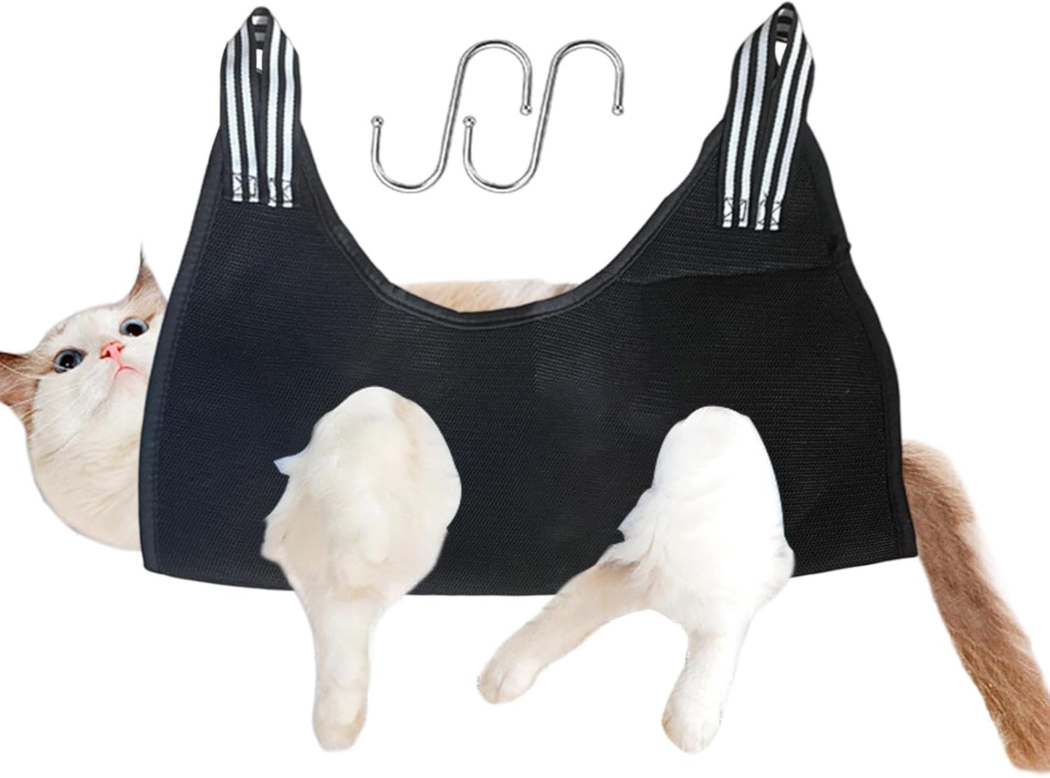 MATERIALE COMFORT E TRASPIRABILITÀ: Le nostre amache per la toelettatura dei cani sono realizzate in cotone poliestere morbido e traspirante che consente la circolazione dell'aria e previene il senso di soffocamento. I tuoi animali domestici si sentiranno rilassati e a proprio agio nella loro amaca. Opzioni di taglia: scegli la taglia ideale per il tuo amico peloso dalla nostra gamma di quattro taglie. È adatto per animali di piccola, media e grande taglia e offre un rifugio confortevole che può essere progettato secondo i vostri desideri. Ampia applicazione: questa amaca per la toelettatura del cane è un assistente per la toelettatura! Non solo fornisce al tuo amico a quattro zampe un comodo lettino in cui rilassarsi, ma funge anche da piattaforma di rifinitura per gli animali domestici disordinati. Ideale per la cura degli animali, massaggi e bagni. Design portatile: goditi un comodo relax con la nostra amaca per toelettatura per cani leggera e portatile. Questo accogliente rifugio è perfetto per rilassarsi in movimento ed è facile da riporre e trasportare, rendendolo un must per i proprietari di animali in movimento. Durata eccezionale: sentiti sicuro di sapere che i tuoi compagni felini si accoccolano su un'amaca realizzata con cura con materiali solidi e durevoli. Le nostre amache per la toelettatura dei cani non si rompono né sbiadiscono.
