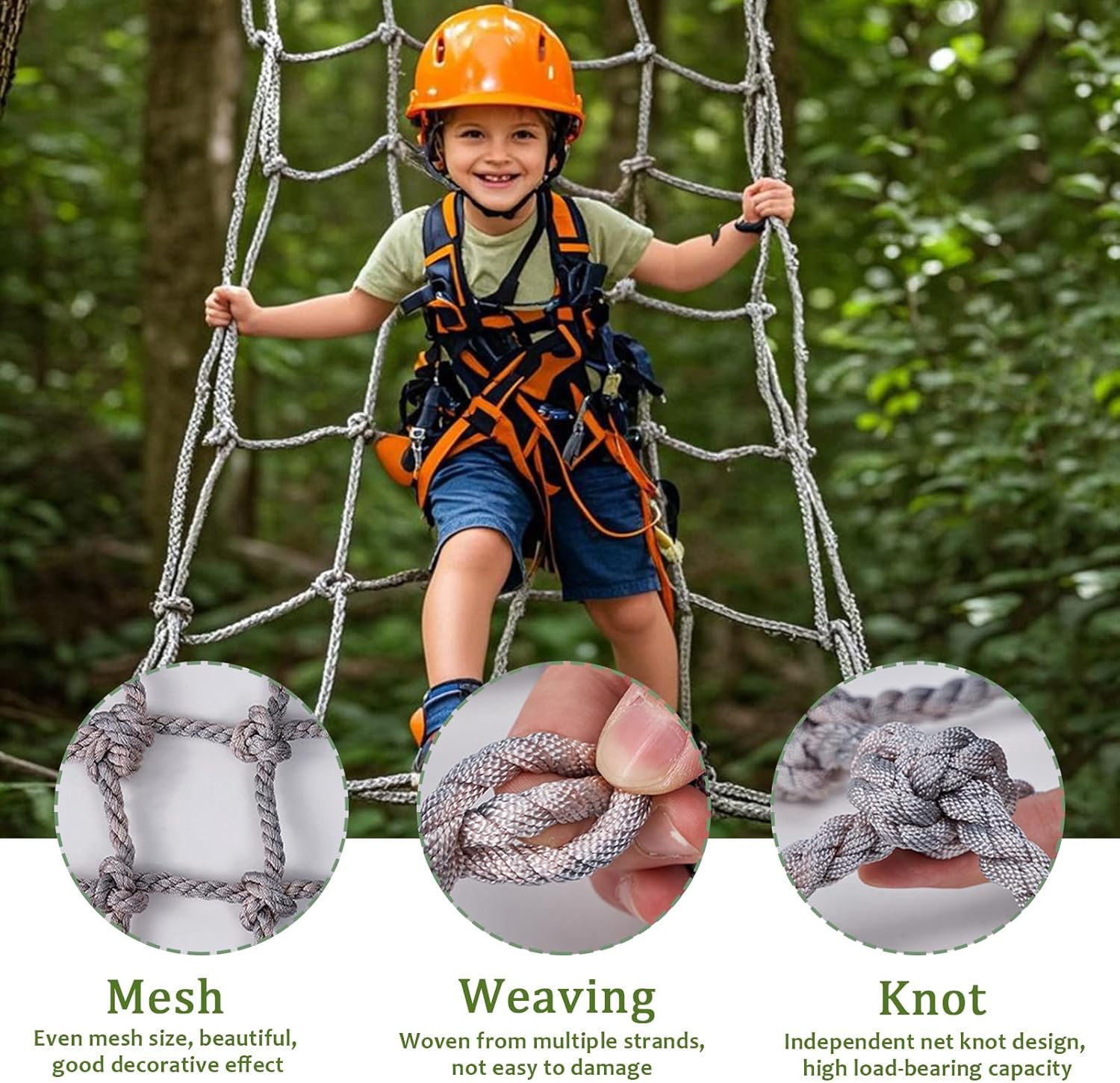 Rete da arrampicata intrecciata a mano: la rete di sicurezza per bambini è resistente anche se utilizzata all'aperto, intrecciata robusta, nodo robusto, intreccio multi-filo, rende la corda più resistente, ha una forte resistenza agli urti, può resistere alle peggiori condizioni Sicurezza dei materiali: la rete del parco giochi è realizzata in fibra di poliammide ad alta resistenza, con piccola capacità di estensione elastica, resistente alle intemperie, resistente all'usura, lunga durata, protezione solare, forte e durevole, forte capacità di carico e la capacità di carico può raggiungere i 300 kg Conservazione portatile: la corda della rete del telaio da arrampicata è moderatamente morbida, non sbiadisce facilmente, non teme vento e pioggia, ha una lunga durata, è più resistente, facile da installare e smontare. Quando non è in uso, può essere ripiegata per una facile conservazione Applicabile a: varie scene interne ed esterne, case sugli alberi, camion merci, scale, balconi, asili nido, parchi di divertimento, strutture pubbliche, isolamento per la protezione delle piante, edifici, reti da carico, reti da giardino, ecc., possono essere utilizzate per proteggere la sicurezza degli adulti e bambini Dimensioni personalizzate: spaziatura delle maglie: 10 cm; diametro della corda: 10 mm. La rete protettiva può essere personalizzata con qualsiasi spaziatura delle maglie, spessore della corda, lunghezza*larghezza e colore di cui hai bisogno