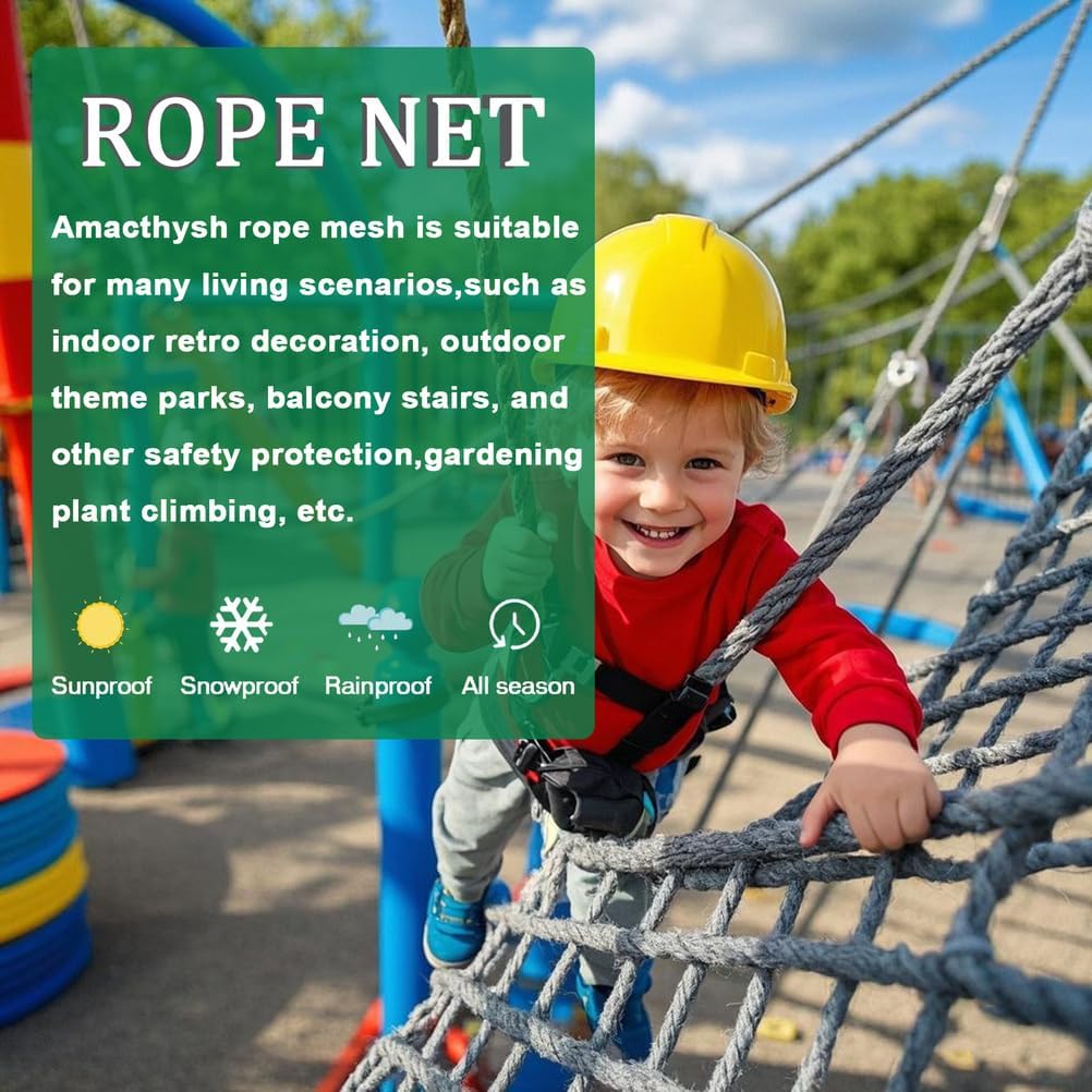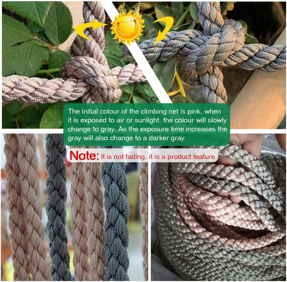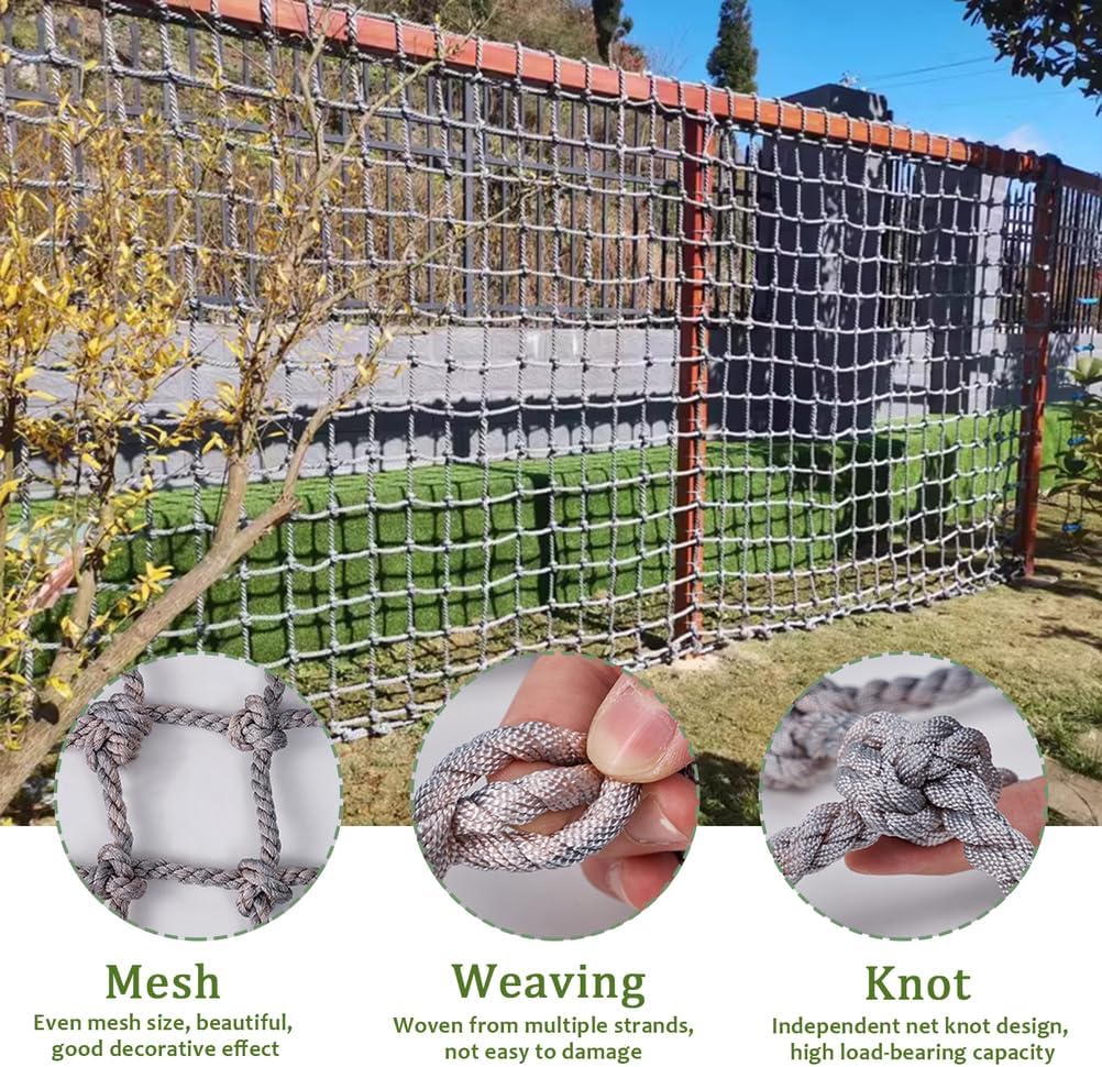 Rete da arrampicata multiuso: rete da gioco per bambini che si arrampicano, questa rete da gioco è utilizzata principalmente per l'arrampicata ed è disponibile per bambini e adulti normali Dimensioni della rete da carico per arrampicata all'aperto: spaziatura della griglia 20 cm; diametro della corda 10 mm, lunghezza da 3,3 piedi a 13,1 piedi, larghezza 3,3 piedi, può essere utilizzata per bambini e adulti per arrampicarsi, protezione di sicurezza Materiale della rete da gioco per arrampicata: fibra di poliammide ad alta resistenza, capacità di estensibilità elastica di piccole dimensioni, resistente alle intemperie, resistente all'usura, protezione solare, forte, robusta e durevole, forte capacità di carico, lunga durata Robusti nodi della rete da arrampicata: intrecciati a mano, con nodi più belli, più forti e più sicuri alla connessione della maglia, che consentono di arrampicarsi meglio senza scivolare e godersi il divertimento dell'arrampicata Personalizzazione: qualsiasi altra dimensione della rete da gioco, come spessore della corda, diametro della maglia, lunghezza * larghezza, sono disponibili per la tua scelta