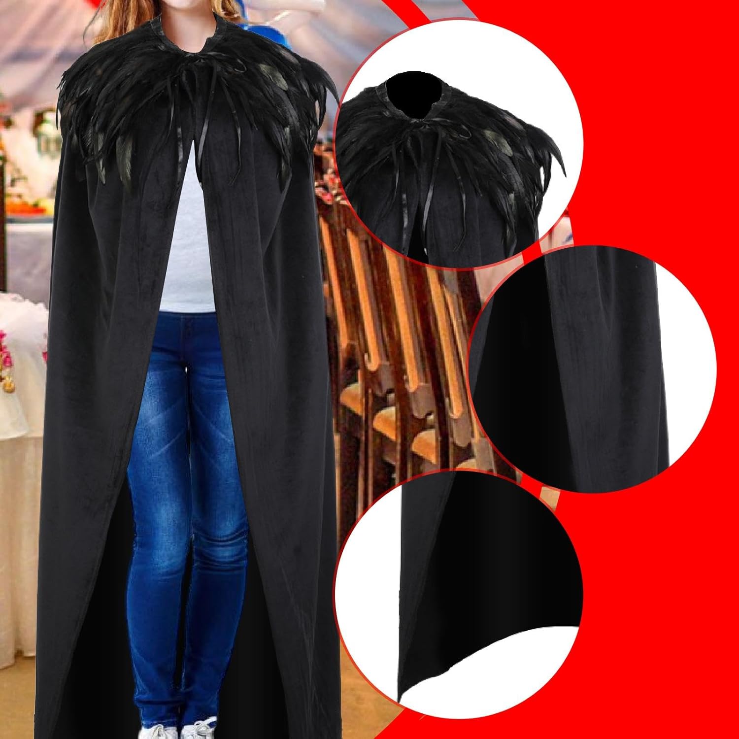 【Accattivante】 Il mantello di velluto con mantello di piume è adatto per spettacoli, feste e costumi da ballo. Questo mantello di piume aggiungerà un tocco drammatico a qualsiasi outfit. 【Versatile】: Il mantello di velluto ideale per spettacoli teatrali, feste in maschera o eventi a tema - distinguiti dalla massa con questo accessorio unico 【Set completo】: Include 1 classico mantello di piume; pronto per migliorare immediatamente il tuo look,Confortevole: il mantello con scialle di piume è realizzato in velluto di alta qualità e piume artificiali, offrendo una sensazione morbida e un abbigliamento comodo per tutta la notte. 【Dimensioni generose】: con una lunghezza di . 150 cm/59,06 pollici, si adatta comodamente alla maggior parte degli adulti