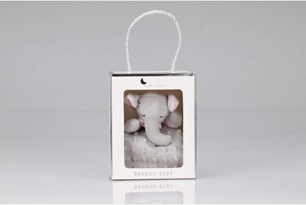 Dou dou per bambini a forma di elefante in rosa. Si tratta di una piccola coperta per far dormire bene i bambini. Dimensioni del doudou: 28 x 17 cm Materiale: 100% poliestere. Sensazione vellutata molto morbida e piacevole per il bambino.