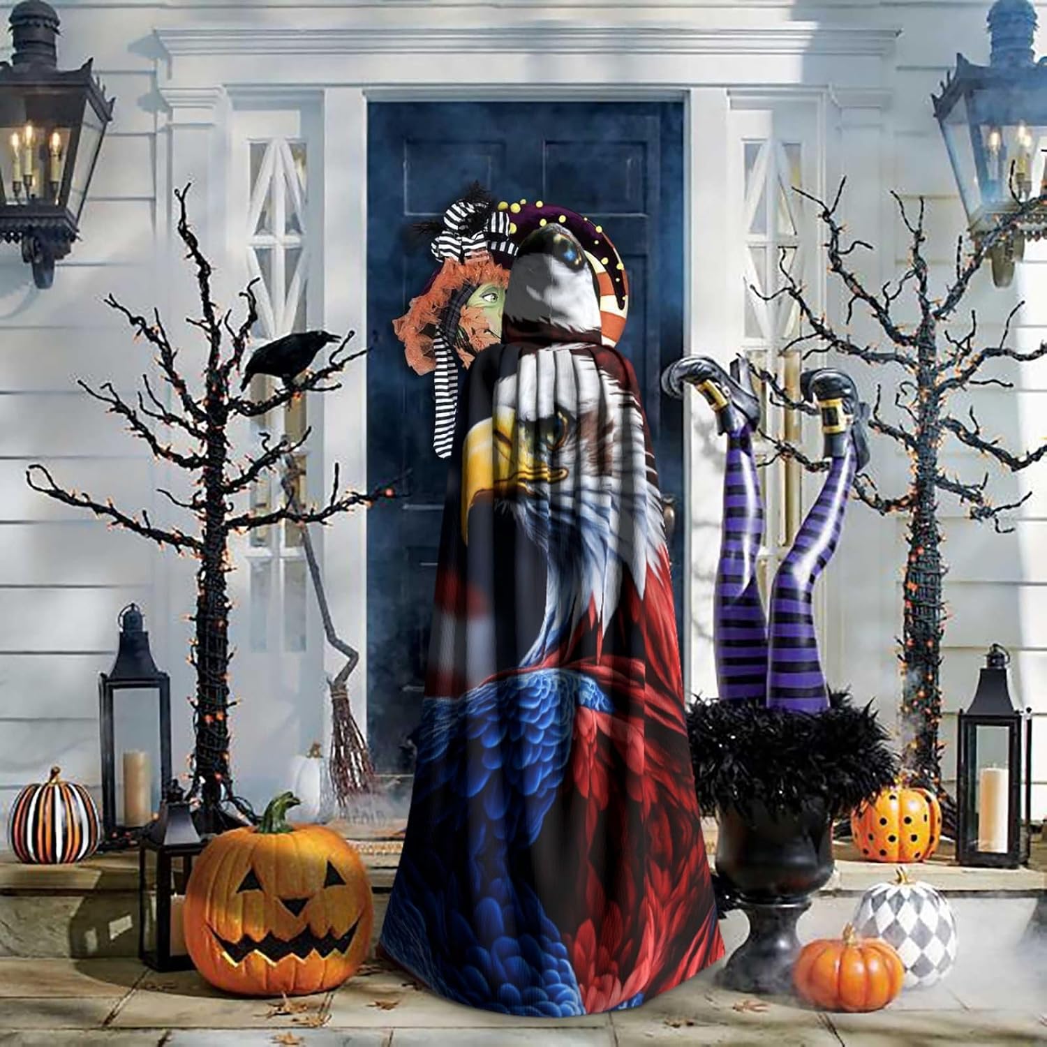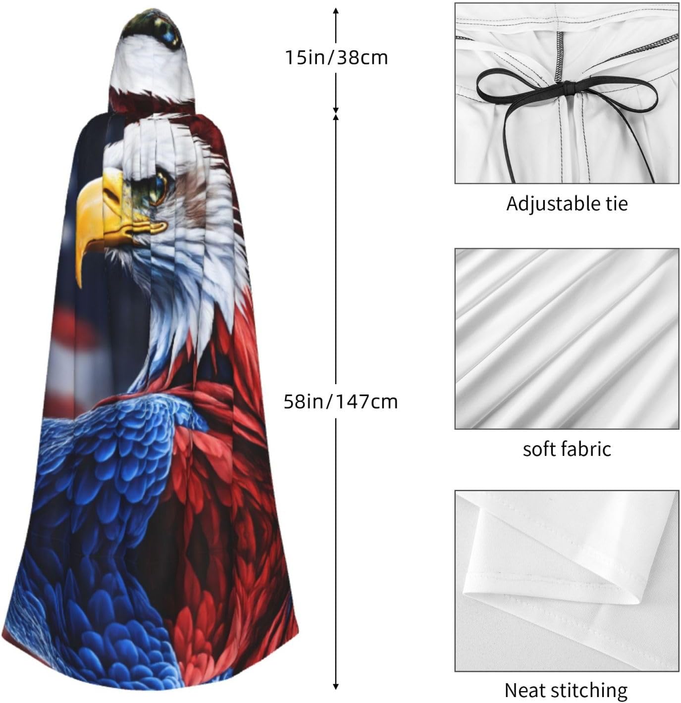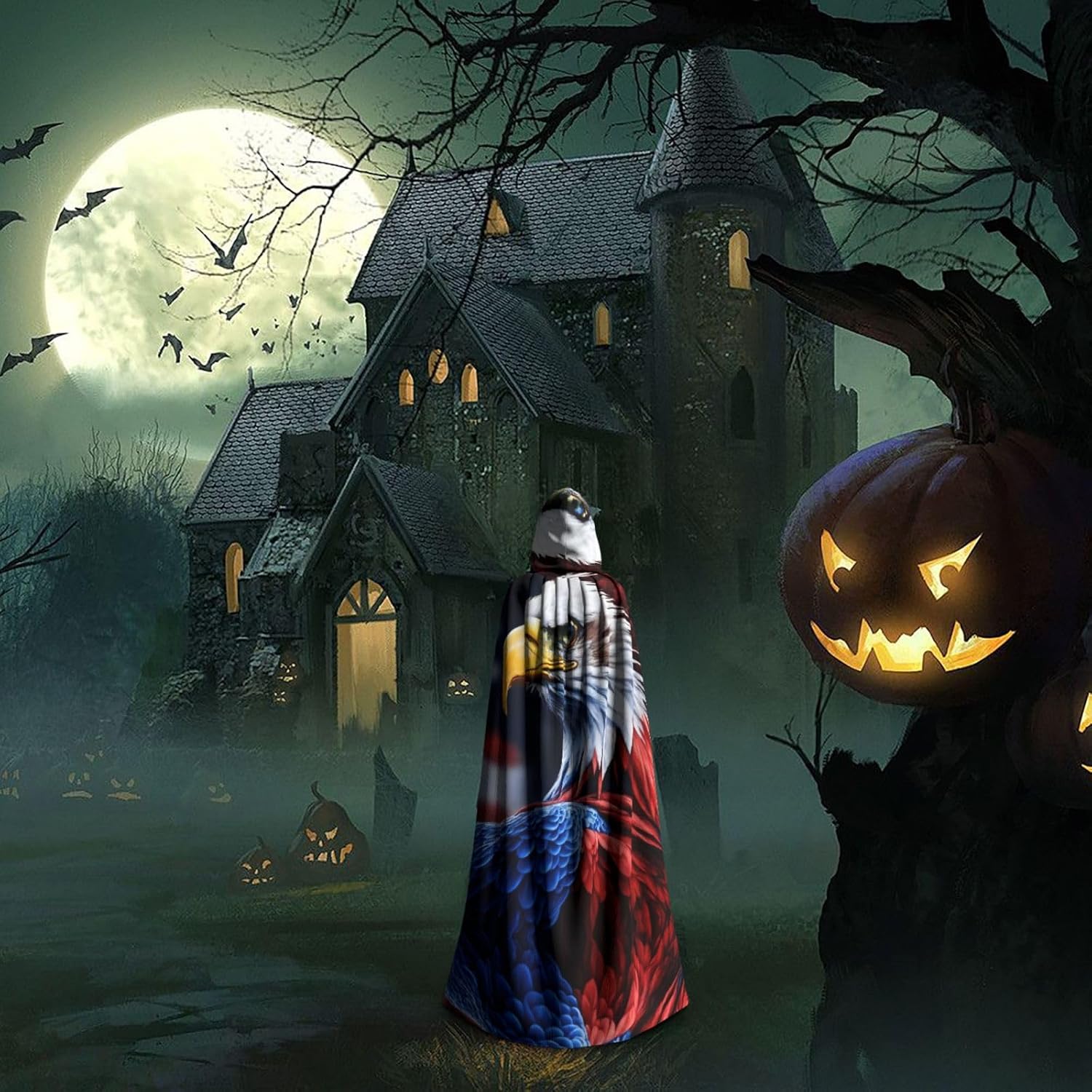 American Bald Eagle Mantello con cappuccio Unisex Halloween Natale Mantello Vampiro Mago Robe Cosplay Costume