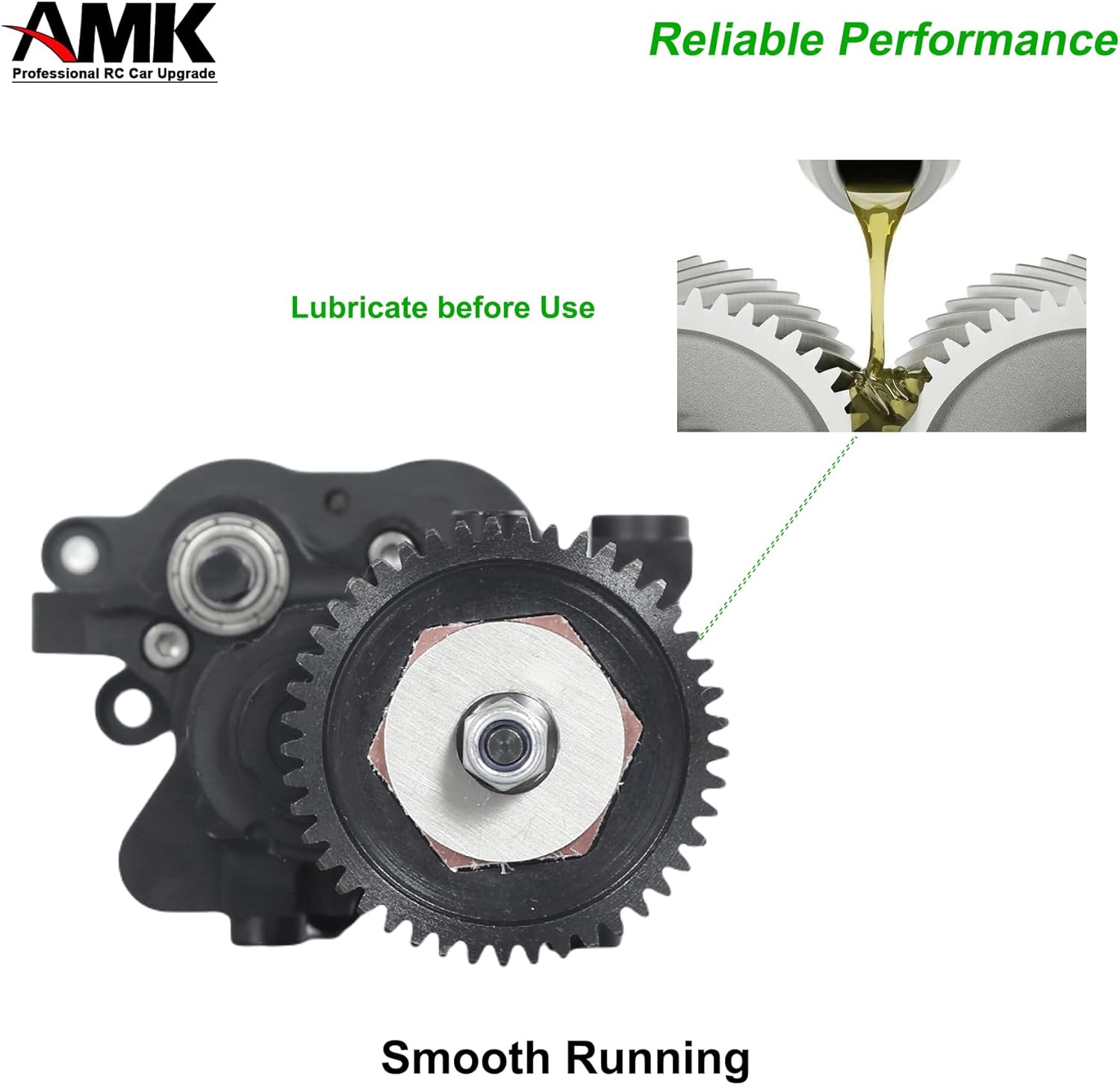 Cambio TRX4: il cambio transger 1/10 è compatibile con RC crawler 1/10 TRX4 e TRX6. Per altri modelli e telai fai da te, si prega di selezionare in base alle dimensioni e ai parametri di prestazione Trasmissione in alluminio 1/10: alloggiamento interamente in metallo e ingranaggi in metallo per un cambio più forte e durevole Trasmissione a 2 velocità: ingranaggi a bassa velocità e ad alta velocità. Negli ingranaggi a bassa velocità, la trasmissione è più alta, fornendo più coppia e capacità di salita, mentre negli ingranaggi ad alta velocità la trasmissione è inferiore, fornendo velocità più elevate Cambio di trasferimento: la trasmissione per crawler RC 1/10 può offrire molteplici modalità operative, come trazione integrale a tempo pieno, trazione anteriore, trazione posteriore e diversi ingranaggi a bassa e alta velocità, consentendo all'auto RC di guidare su terreni complessi con più coppia e trazione Prestazioni affidabili: ingranaggi robusti e lavorati a CNC con dimensioni precise e maglie strette per un funzionamento regolare. Si consiglia di ingrassare prima dell'uso