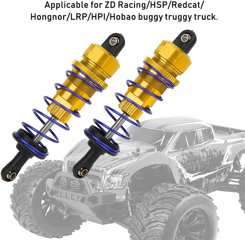 Realizzato in lega di alluminio di alta qualità, questo accessorio è robusto e durevole. L'artigianato eccellente, le dimensioni perfette e le opzioni multicolori rendono il tuo modello di telecomando migliore. Questo accessorio è piccolo e leggero e non appesantirà la tua auto RC. Applicabile per camion con ZD Racing/HSP/Redcat/Hongnor/LRP/HPI/Hobao. Le molle di alta qualità offrono un'eccellente ammortizzazione e migliorano gli accessori del tuo modello di auto.