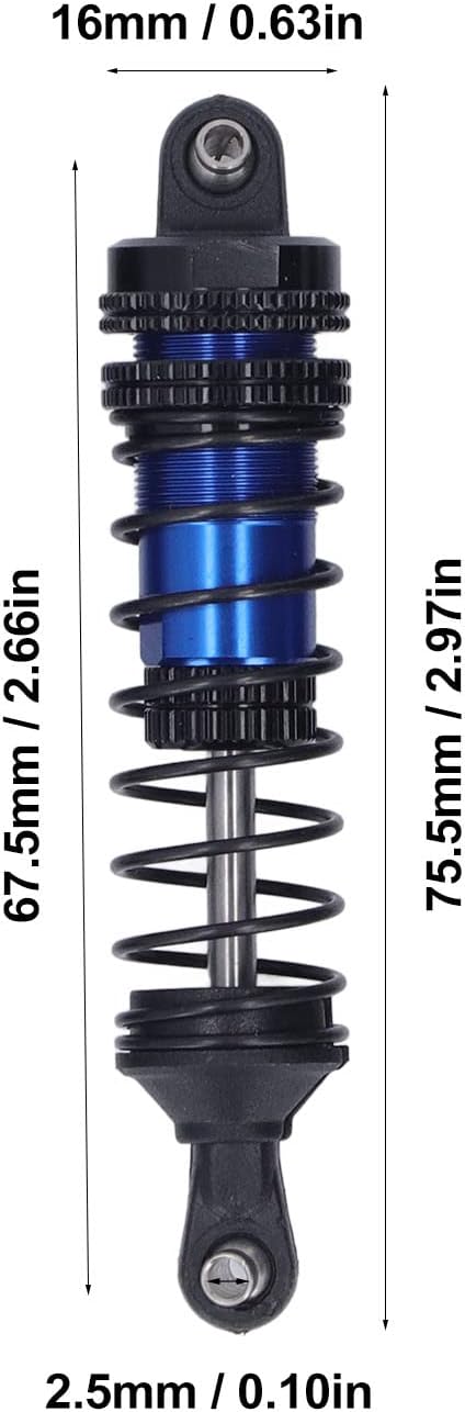 Bilanciamento della guida: questi assorbitori posteriori anteriori RC offrono un'esperienza di guida bilanciata e riducono le vibrazioni dovute a cattive condizioni stradali. Installazione semplice: questi ammortizzatori per LC Racing possono essere facilmente installati e impongono carico minimo alla tua auto RC, la stabilità è effettivamente migliorata. Materiale durevole: questi ammortizzatori per auto RC sono realizzati in lega di alluminio e materiale plastico, resistenti all'usura, alla corrosione e alla ruggine. Progettato per auto RC 1/14 1/16: questo ammortizzatore posteriore anteriore è progettato per Wltoys, per auto RC LC Racing 1/14 1/16. Elevata elasticità: questi ammortizzatori per con molla altamente elastica garantiscono un'elevata stabilità e eccellente effetto ammortizzante.