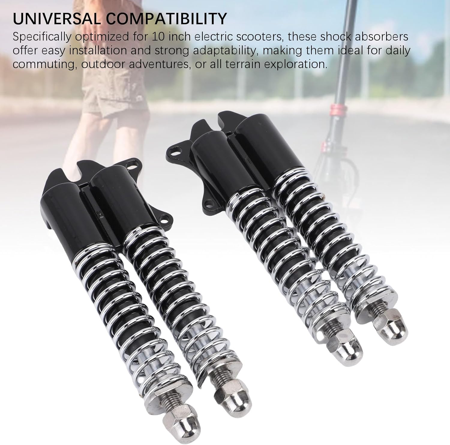 [Installazione semplice] Specificamente ottimizzati per scooter elettrici da 10 pollici, questi ammortizzatori offrono una facile installazione e una forte adattabilità. per gli spostamenti quotidiani, le avventure all'aria aperta o l'esplorazione su tutti i terreni. il design universale garantisce la compatibilità con la maggior parte degli scooter elettrici da 10 pollici [Controllo migliorato] Migliora il controllo generale dello scooter migliorando la stabilità durante le corse ad alta velocità, le curve strette o la navigazione su terreni impegnativi.i ciclisti sperimenteranno una manovrabilità e un viaggio più sicuro e divertente.la trazione e l'equilibrio migliorati rendono questi ammortizzatori un must per ogni appassionato di scooter . [Comfort superiore] Progettata con un doppio ammortizzatore idraulico ad alta efficienza, questa coppia migliora significativamente il comfort di guida assorbendo dolcemente gli impatti da dossi, buche e terreni accidentati. goditi un'esperienza stabile anche sulle strade più impegnative. l'avanzato di smorzamento garantisce un trasferimento minimo degli urti al ciclista, rendendo ogni viaggio più fluido e piacevole. [Risposta rapida] Dotati di un meccanismo a molla ad alta elasticità, questi ammortizzatori offrono una risposta rapida e prestazioni di rimbalzo superiori. si adattano istantaneamente alle superfici irregolari, minimizzando gli urti sia per lo scooter che per il pilota durante le corse dinamiche. che tu stia viaggiando o esplorando, questo garantisce una guida e controllata. [Costruzione durevole] Realizzati in lega di alluminio ad alta resistenza e trattati con un rivestimento robusto, questi ammortizzatori garantiscono affidabilità duratura e eccellente resistenza all'usura. Progettati per resistere a condizioni atmosferiche avverse, forniscono prestazioni stabili e durata, garantendo che il tuo scooter rimanga in ottime condizioni per anni.