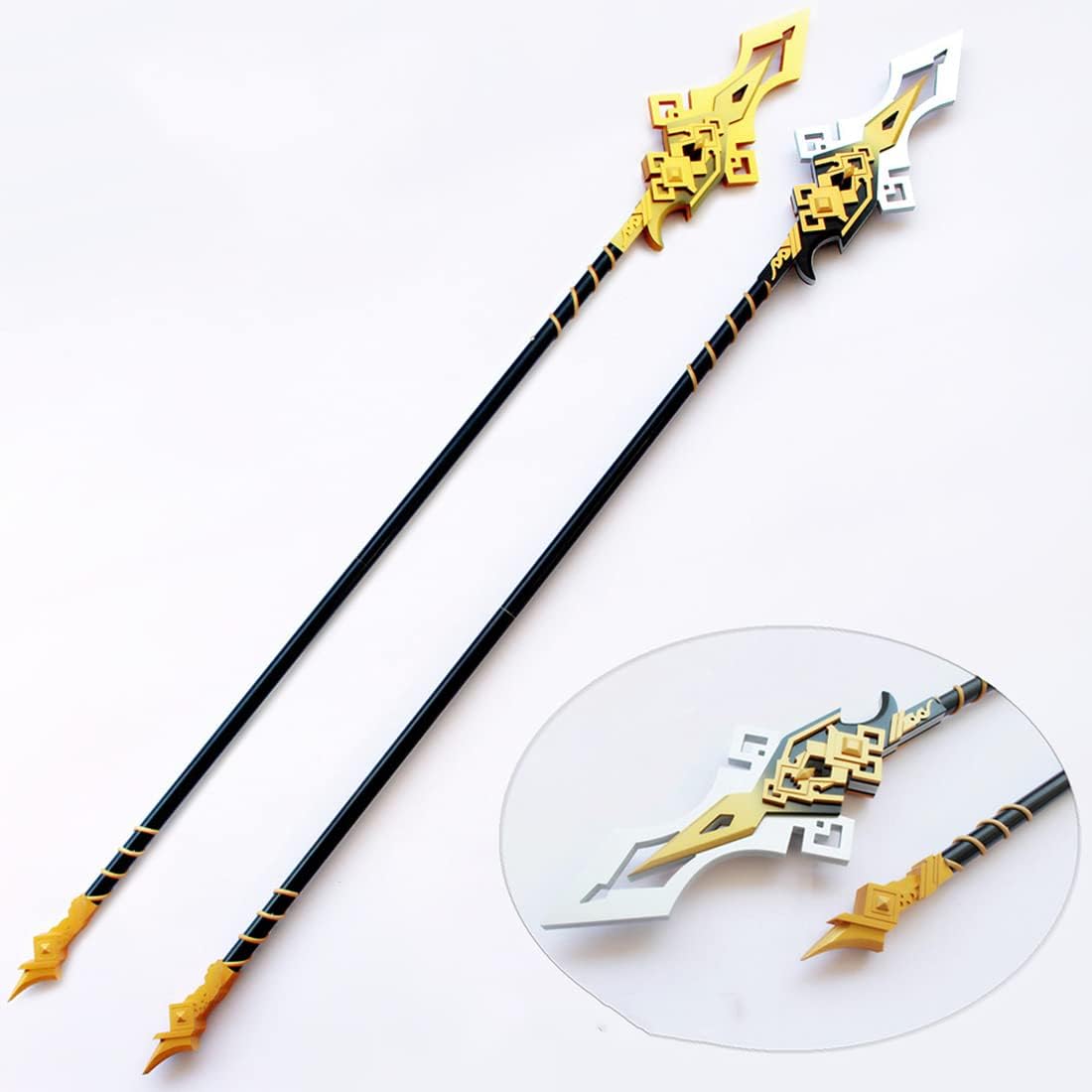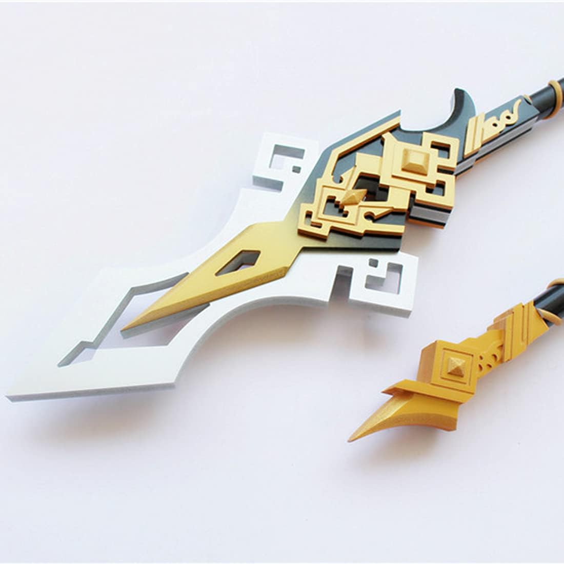 Realizzato in PVC ad alta densità, tubo in PVC, EVA e altri materiali, ecologico e sicuro, viene utilizzato per spettacoli cosplay, non danneggia le persone e può essere protetto con sicurezza. Questo articolo è realizzato con cura per ripristinare ogni dettaglio il più possibile, dalla proporzione alle dimensioni delle armi fino al restauro elaborato, in modo da poter ripristinare meglio i personaggi. L'arma può essere rimovibile, il che facilita l'esecuzione delle attività. Cartone ondulato spesso di alta qualità + pluriball + imballaggio in cotone perlato, protezione completa delle armi durante il trasporto. I prodotti sono fatti a mano. A causa dei diversi lotti, dell'influenza della luce e della differenza del monitor del computer, ci possono essere differenze di colore o lievi differenze di dimensioni. Nota: questo accessorio di scena è un accessorio di scena performante adatto per costumi di Halloween e cosplay. Si prega di non colpire con forza, altrimenti si romperà. Età: 14+, le armi sono realistiche e riducibili, adatte per travestimento di Halloween, animazione, gioco di ruolo.
