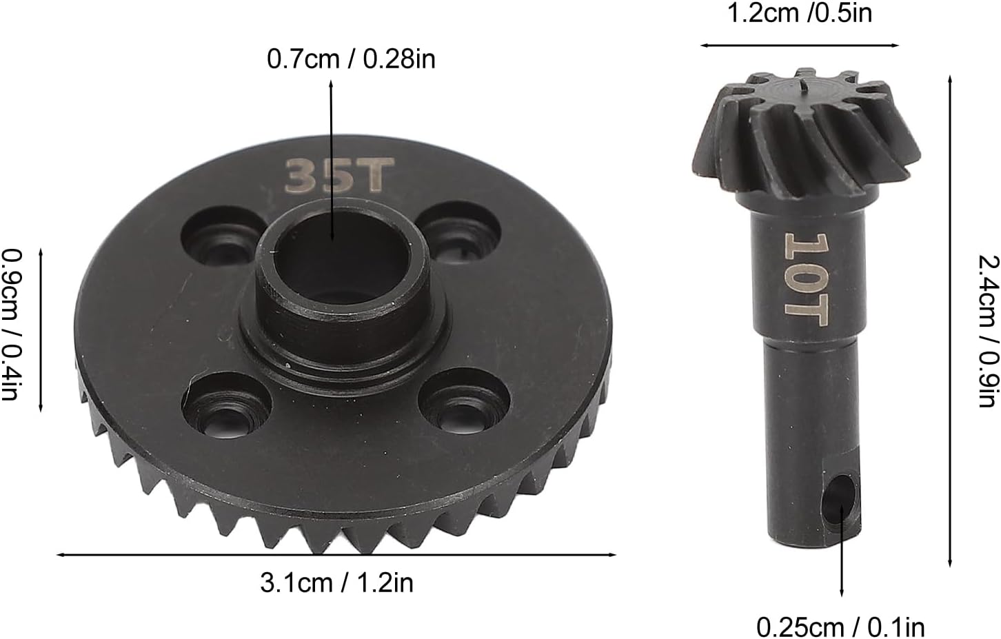 Buone prestazioni: meno vibrazioni degli ingranaggi, meno rumore, meno usura, possono fornire una maggiore resistenza e un funzionamento più fluido rispetto ai normali ingranaggi conici dritti. Design a ingranaggi elicoidali: gli ingranaggi 10T 35T riducono la velocità di circa il 9%, design a ingranaggi elicoidali, regolando il rapporto di trasmissione e la coppia, il veicolo ha migliori prestazioni di arrampicata. Materiale principale: realizzato in materiale d'acciaio di alta qualità, prestazioni stabili, non facile da deformare, resistenza all'usura, elevata resistenza e lunga durata. Design ragionevole: facile installazione e smontaggio per la sostituzione diretta di parti originali o parti danneggiate maggiore resistenza. Leggero: il peso leggero non aumenta il carico 'auto RC e può fornire una guida equilibrata per massimizzare le prestazioni 'auto RC.
