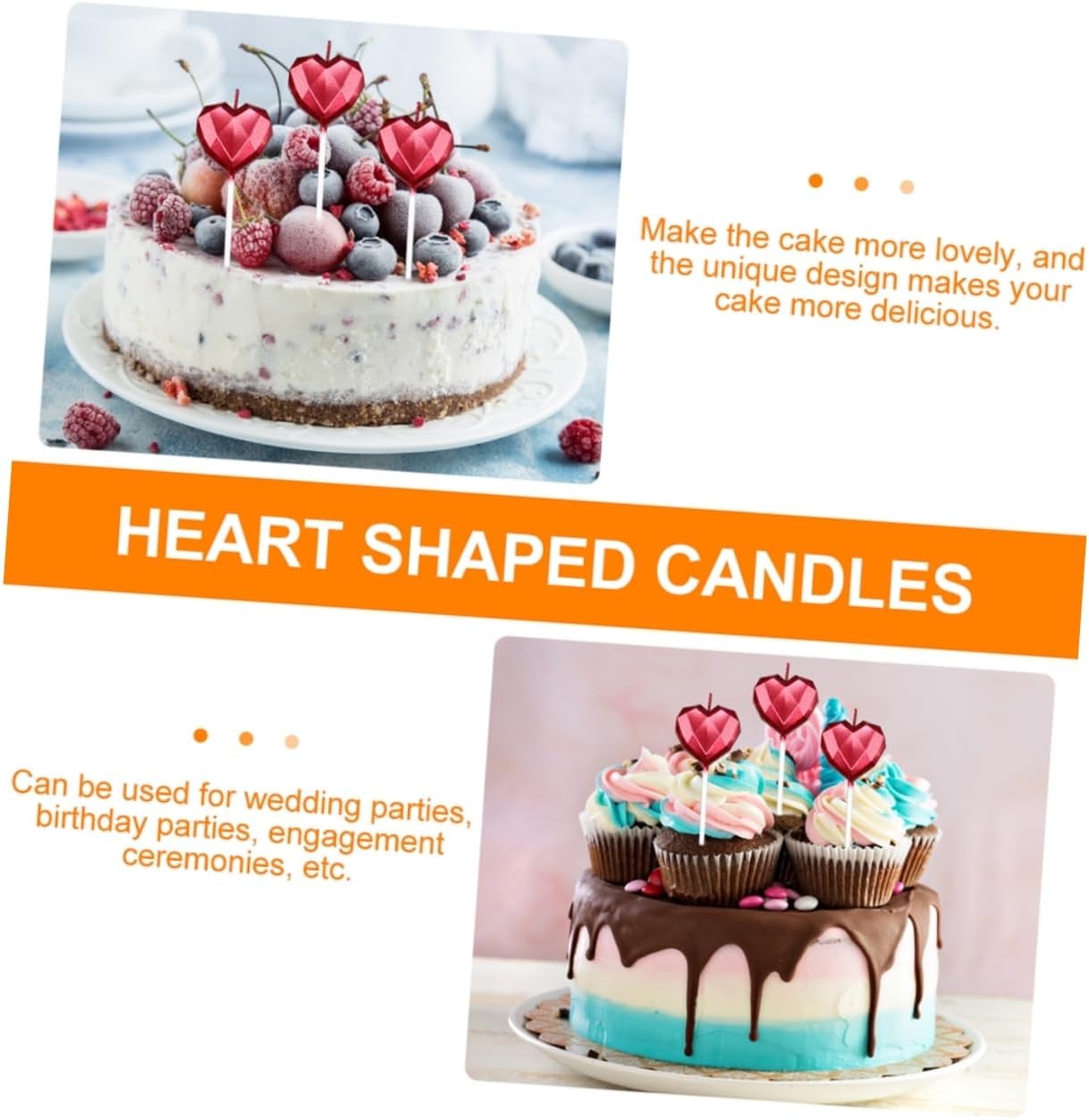 Candele per torta a cuore: non solo adatte per torte per renderle attraenti, ma possono anche essere applicate come abbellimento sui vostri tavoli, candeline per torte di compleanno Forniture per festival: è realizzato con materiali di cera di paraffina e può essere tranquillamente utilizzato per la decorazione di torte, decorazioni per torte di compleanno Candele per torte da forno: le decorazioni necessarie per la tua torta e renderla adorabile e piena di divertimento, decorazione della torta nuziale Decorazione con candeline per torta: servono per decorare torte, dessert, cupcake, cibo e altro!, topper per candeline per torta Candeline per torta a forma di cuore: con un design bello e unico, è l'accessorio per la decorazione della torta, la per la torta nuziale