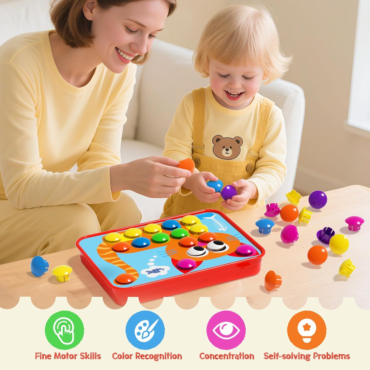 Gioco Classico a Tasselli: Adatto a bambini a partire da 2 anni; aiuta a imparare e abbinare i colori in modo divertente; premere e rilasciare i pulsanti favorisce lo sviluppo della motricità fine e delle capacità di sequenziazione Design Sicuro: Il grande gioco di mosaico è realizzato con materiali sicuri; i pulsanti sono grandi e hanno bordi lisci, garantendo un gioco sicuro Design Innovativo: Le schede colorate possono essere abbinate facilmente ai pulsanti colorati; la tavola gialla stimola l’immaginazione e la creatività dei bambini, permettendo loro di creare design unici Ottima Scelta per Bambini: AMOSTING è adatto a bambini a partire da 2 anni e rappresenta una scelta valida per compleanni, feste dei bambini, Natale, Pasqua o per l’inizio della scuola Contenuto del Set: Include 46 pulsanti colorati, 20 diverse schede modello, 1 tavola per mosaico e 1 vassoio di stoccaggio; facile da pulire e riporre
