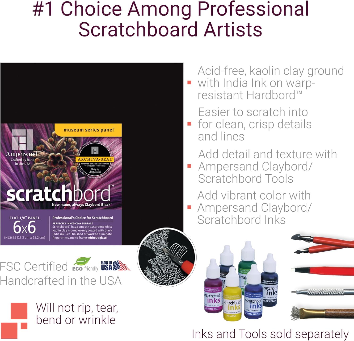 scratchboard qualità Premium per la creazione di bianco su nero graffi Claybord che è uniformemente rivestito con inchiostro di china Cornice senza vetro volta sigillato pH neutro e acido libero 11 x 14 pollici 1/8 di pollice profondità