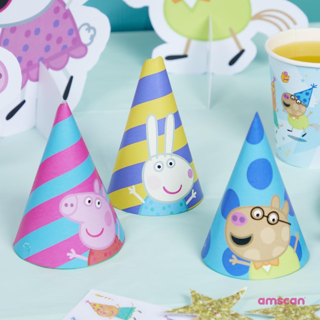 Organizza la festa di compleanno definitiva con la nostra gamma di feste con licenza ufficiale Peppa Pig. Divertenti inviti per feste che si arrotolano in un cappello da festa a forma di cono! Buste abbinate incluse Materiale: carta Confezione da 6