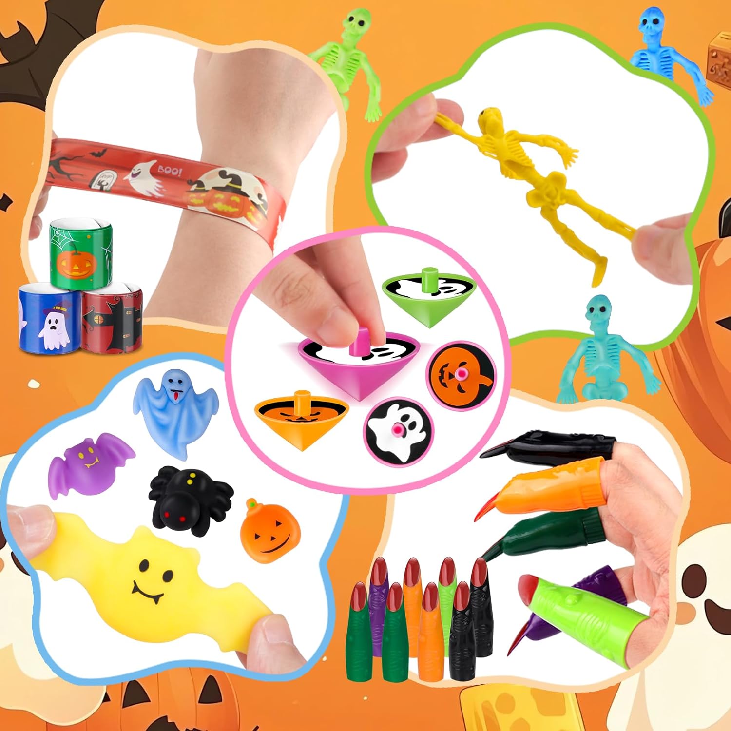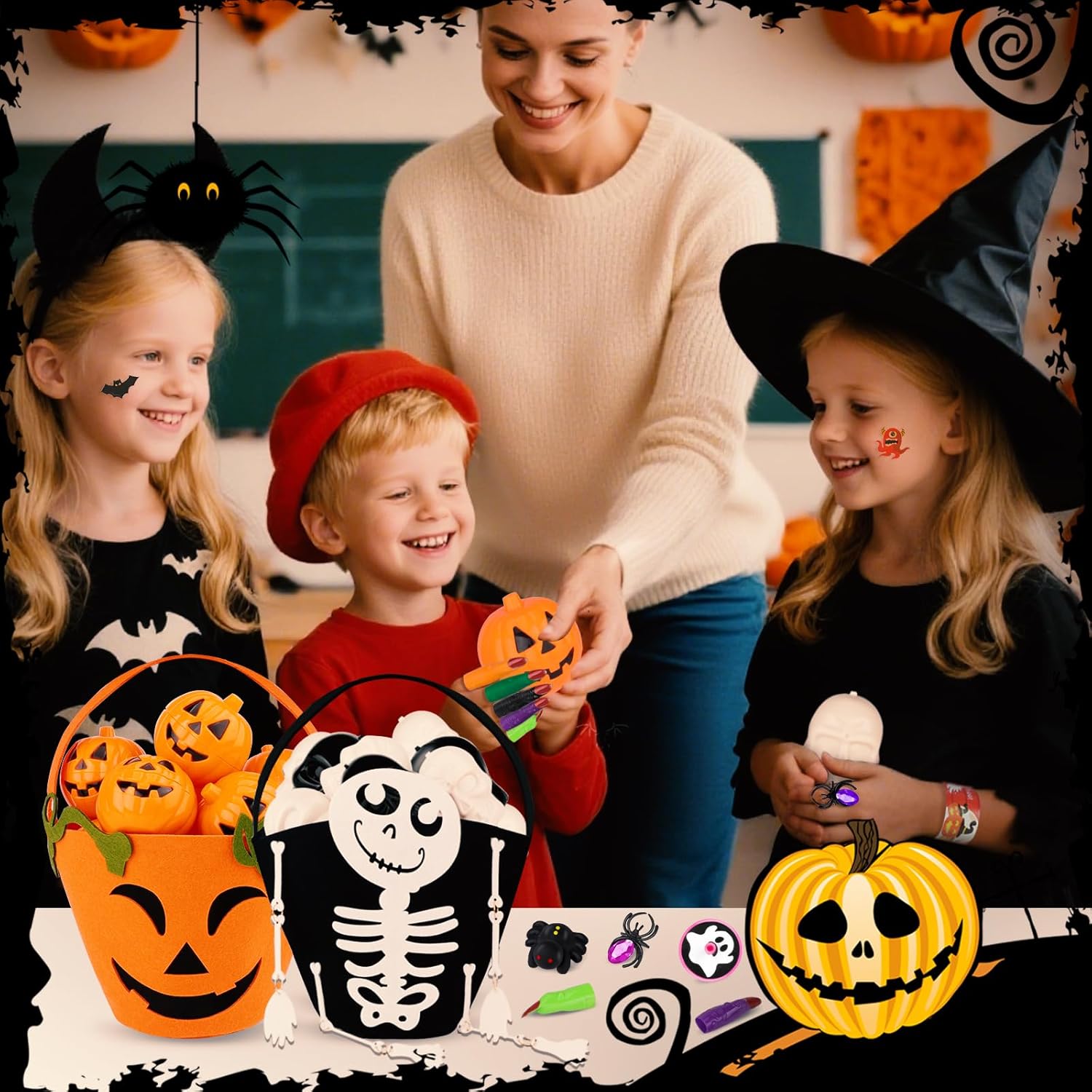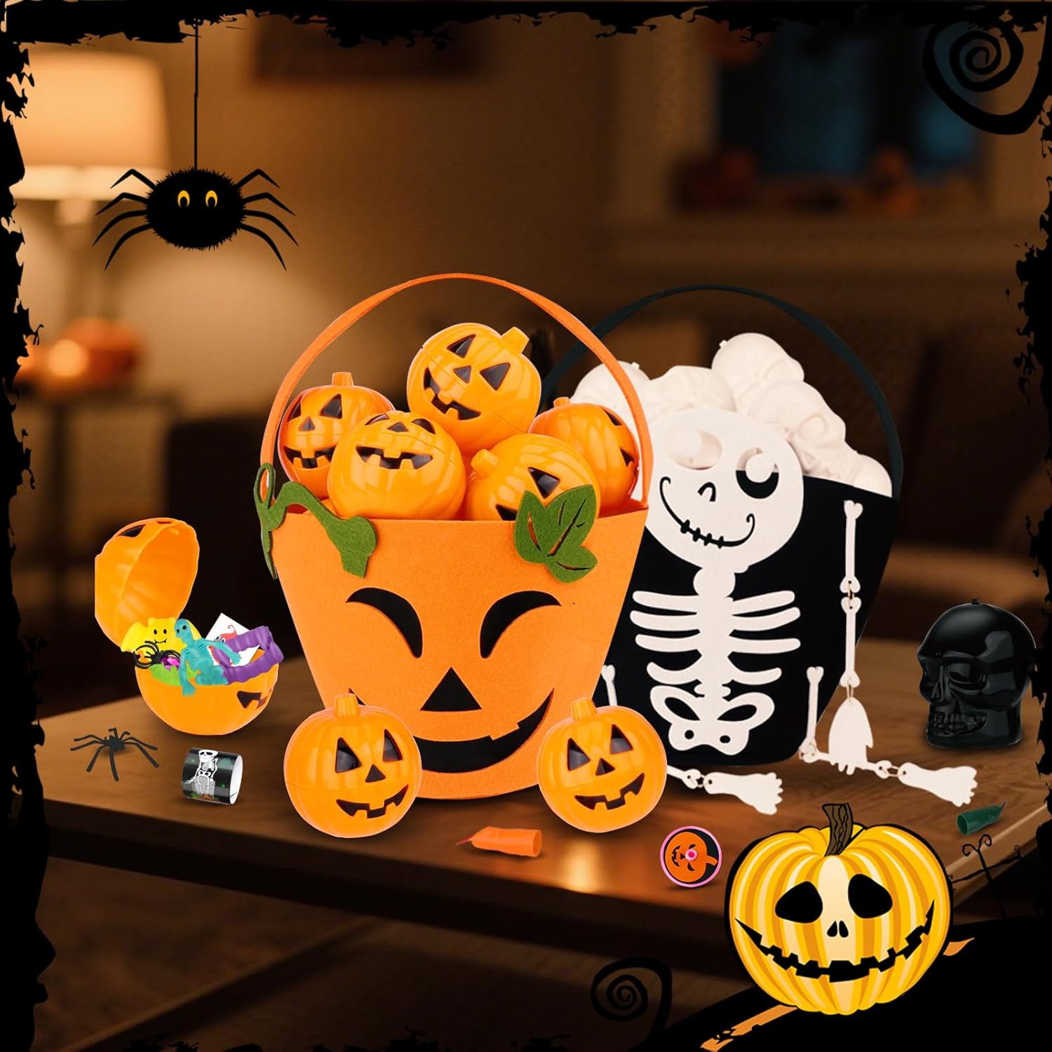 【Pacchetto super conveniente】 144 giocattoli di Halloween (12 varietà tra cui tatuaggi, zanne di vampiro, ragni di gemme, pipistrelli, scheletri e altro!), 24 mini scatole (6 teschi neri, 6 teschi bianchi, 12 zucche) e 2 borse per feste di Halloween. Il massimo del comfort per una festa divertente! 【Design unici】 Il nostro set da gioco di Halloween è diviso in 12 pacchetti di zucche e 12 secchielli di teschi. Qualsiasi piccolo fantastico giocattolo di Halloween sta in un secchio. I tuoi amici saranno sorpresi di quanti giocattoli divertenti scopriranno quando lo apriranno. 【Scelta perfetta】 Il nostro pacchetto regalo di Halloween contiene una varietà di giocattoli che puoi personalizzare secondo i tuoi desideri. Le diverse opzioni di gioco con i giocattoli nella confezione regalo di Halloween assicurano che voi e i vostri bambini possiate godervi i meravigliosi momenti di Halloween. 【Materiali sicuri per i bambini e non tossici】 Tutti i giocattoli sono realizzati con materiali sicuri certificati (conformi a EN71). Dolcetti di Halloween ideali per i bambini: senza sostanze chimiche nocive, perfetti per le manine dei più piccoli durante le feste di Halloween e gli eventi scolastici. Multiuso: perfetto per scene e decorazioni di Halloween, premi per feste di Halloween, dolcetto o scherzetto, premi di Halloween, regali di Halloween, dolcetti di Halloween, giocattoli di Halloween, bomboniere di Halloween, giocattoli in miniatura, riempitivi per sacchetti di Halloween, dolcetti di Halloween per bambini, riempitivi per sacchetti di Halloween, come regalo di Halloween.
