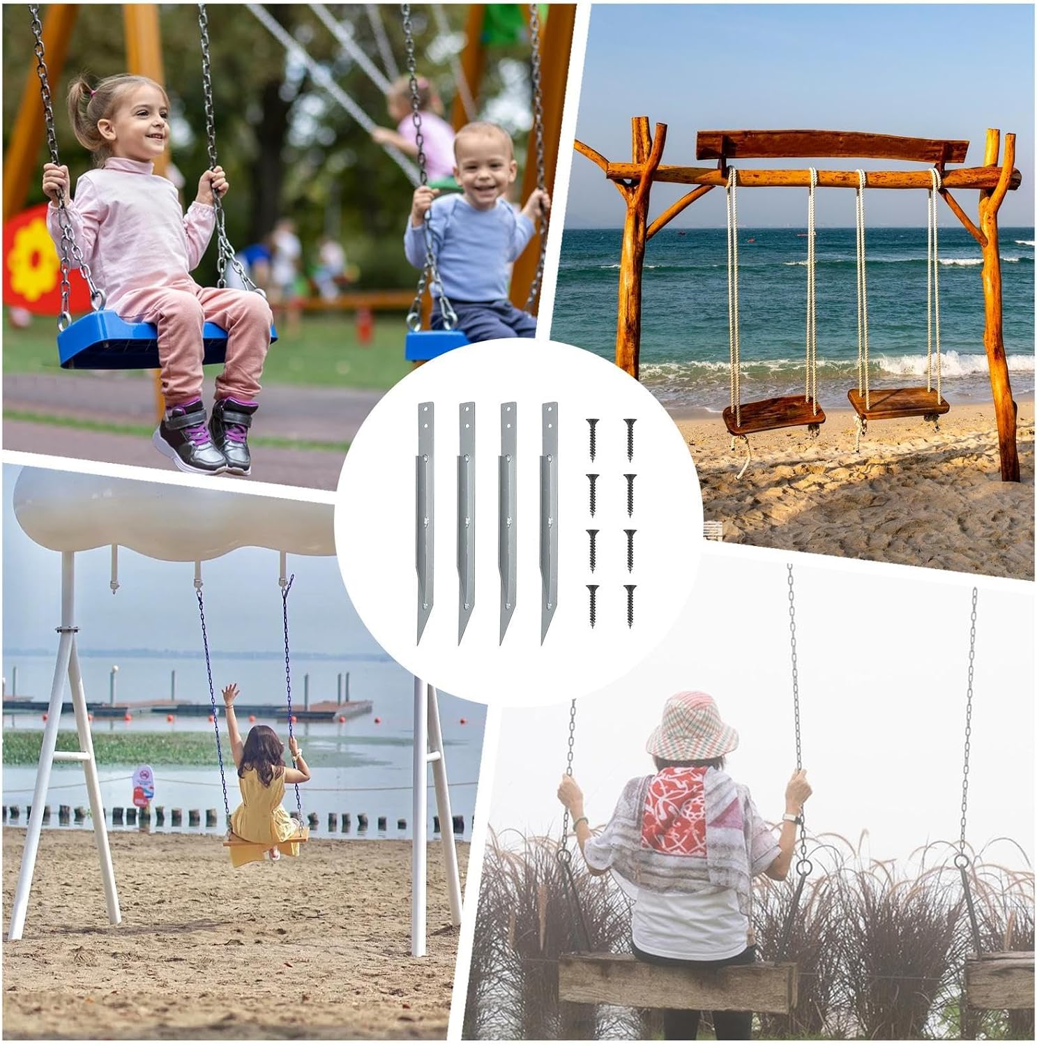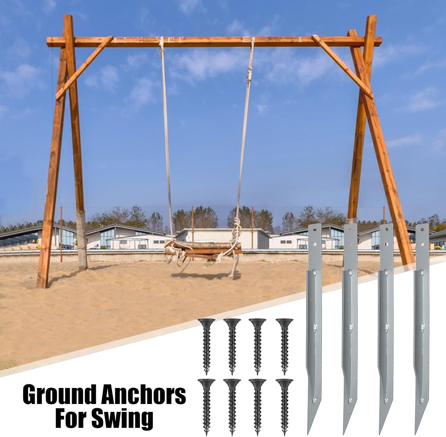 Sicurezza sicura: basta fissare gli ancoraggi oscillanti ai montanti e ai pavimenti con viti per una soluzione affidabile e sicura, stabile e in grado di supportare carichi pesanti dopo l'installazione Usura e strappi del supporto: realizzati in metallo di alta qualità, gli ancoraggi oscillanti rimangono resistenti contro elementi aggressivi come pioggia e neve, garantendo prestazioni e durata di lunga durata Installazione semplice: basta piantare gli ancoraggi nel terreno con un martello, senza bisogno di cemento o strumenti aggiuntivi; La confezione viene fornita con 4 ancoraggi a terra in metallo e 8 viti, rendendo l'installazione un gioco da ragazzi anche per i principianti Regalo creativo: Ideale per i legami familiari, questo set di ancoraggi per altalena trasformerà il tuo giardino in un'area giochi serena, rendendolo il regalo perfetto per amici e famiglie con spazio all'aperto Scopi eccessivi: Fornisce maggiore sicurezza e stabilità alle strutture per l'arrampicata all'aperto e alle torri di gioco per garantire un ambiente sicuro per il gioco avventuroso sui parchi giochi in legno