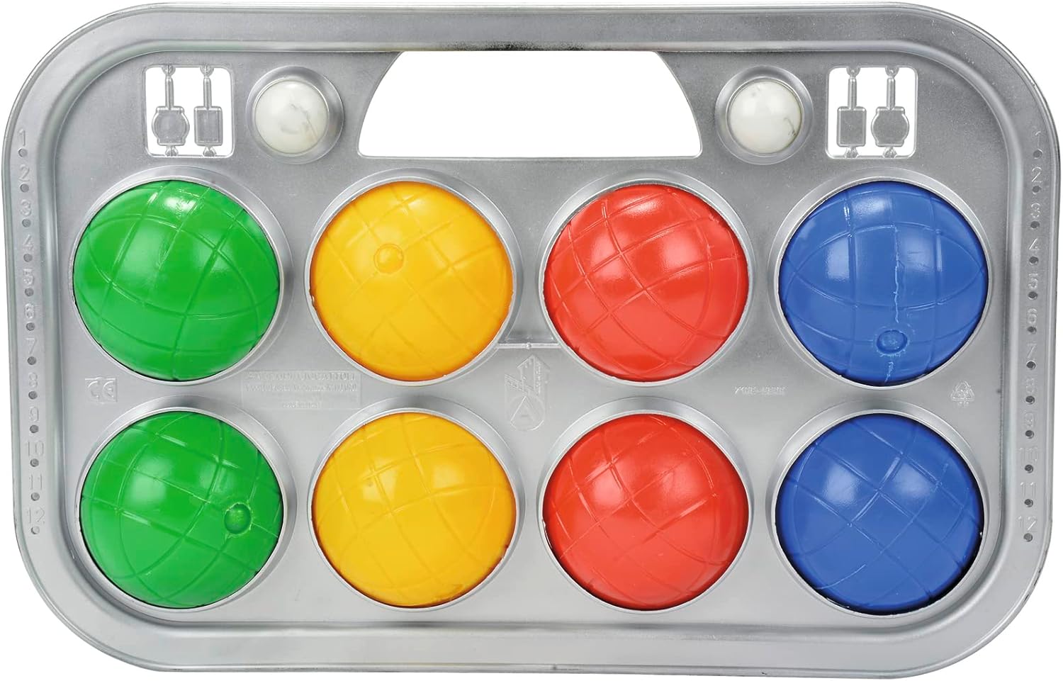 Otto bocce di quattro diversi colori Diametro boccia: 74 mm Due bocce bianco Prodotto di ottima qualità adatto ai bambini