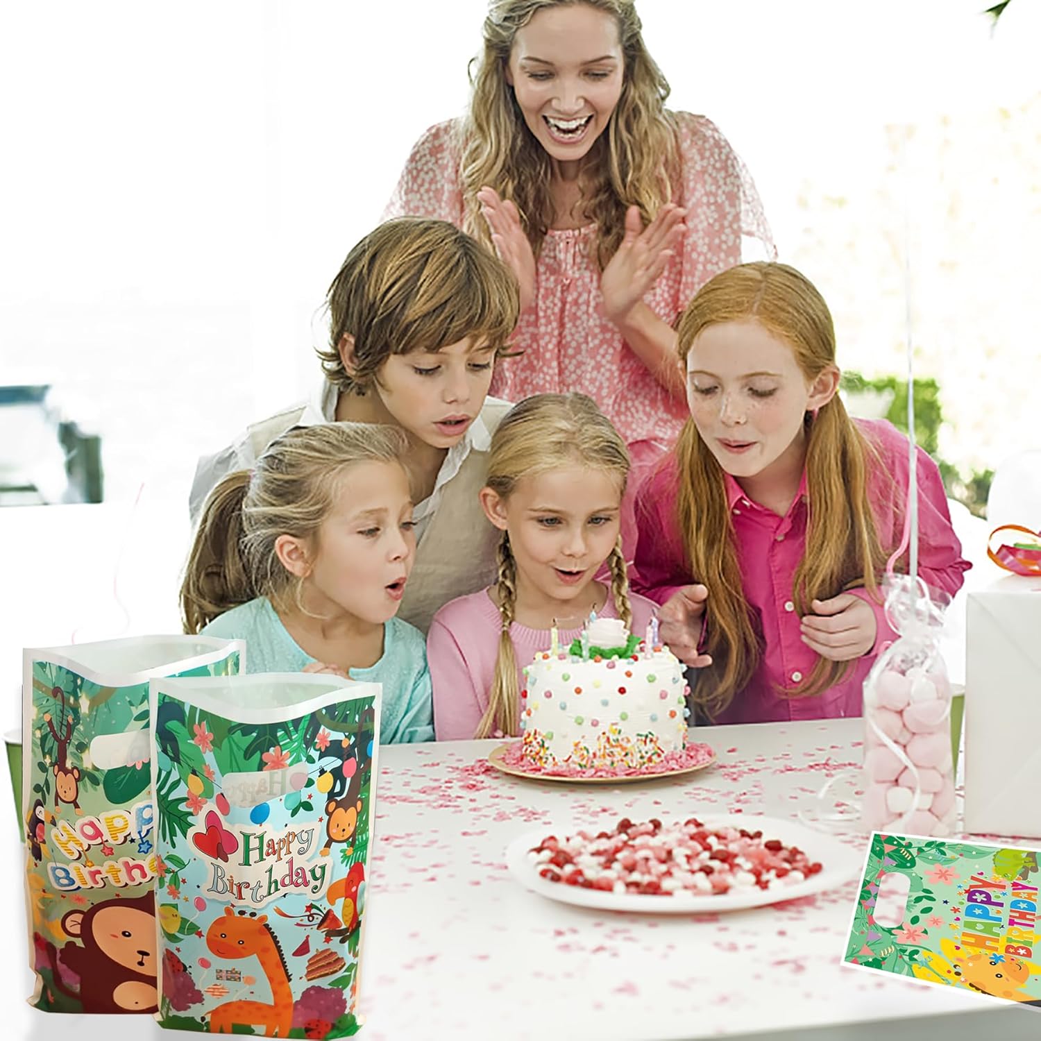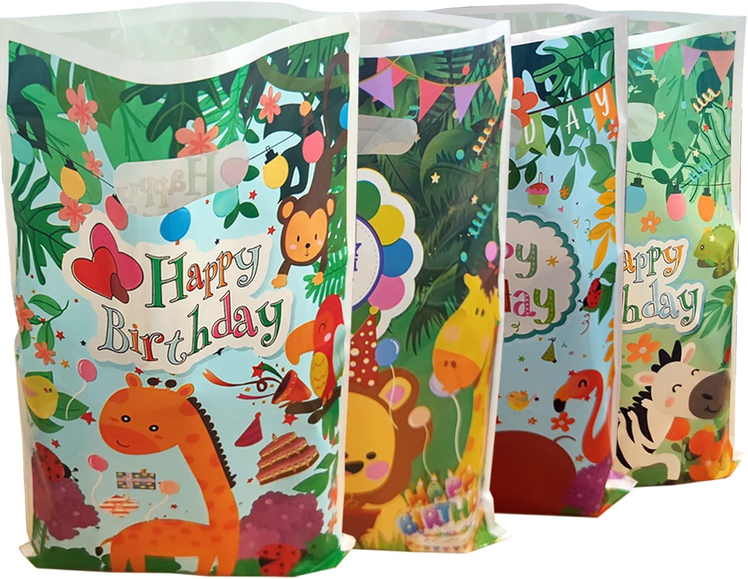 Materiale: questi sacchetti regalo di compleanno sono realizzati in plastica per alimenti, che può essere direttamente a contatto con il cibo, sicura ed ecologica, non tossica e insapore, resistente e non facile da rompere e può essere riutilizzata. Dimensioni, quantità: questi sacchetti regalo hanno 6 modelli diversi, ogni modello ha 5 sacchetti regalo, in totale 30, la loro dimensione è di circa: 25,5 x 16,3 cm. Design a cartoni animati: i sacchetti regalo sono stampati con simpatici animali della giungla dei cartoni animati, che possono essere vestiti come regali per i piccoli ospiti alla festa di compleanno, e i piccoli ospiti saranno attratti dalla loro dolcezza. MULTIFUNZIONALI: Questi sacchetti regalo sono adatti per feste, compleanni, festival estivi, tea party, spesa, baby shower, possono essere utilizzati per confezionare giocattoli, regali o altri piccoli oggetti e possono anche essere usati come piccolo spuntino in viaggio. UTILIZZO VERSATILE: Sono abbastanza grandi per compleanni, baby shower, feste a tema, ecc. e possono essere utilizzati per contenere piccoli regali, piccoli giocattoli, piccoli pasti, ecc.