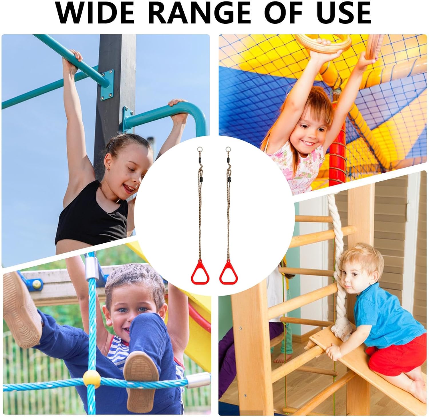 Miglioramento dell'equilibrio: gli anelli da ginnastica per bambini forniscono coordinazione e supporto dell'equilibrio attraverso la funzionalità multiuso basata sulla sospensione, garantendo un coinvolgimento muscolare completo e un miglioramento della forza del core sia negli allenamenti a casa che nelle attività di fitness all'aperto per la crescita dell'atletismo Design con impugnatura antiscivolo: questi anelli da ginnastica sono dotati di una superficie ruvida resistente al sudore per una presa affidabile, garantendo un uso sicuro dell'anello di sospensione mantenendo comode superfici di contatto della mano durante il fitness intenso Regolazione dell'altezza versatile: gli anelli da palestra supportano una regolazione flessibile dell'allenamento attraverso una lunghezza di sospensione regolabile liberamente, garantendo compatibilità per utenti di tutte le altezze e facilitando l'uso a doppio scenario per bambini e adulti con adattabilità per diversi gradi di abilità sia in ambienti domestici che professionali Ampia compatibilità: questi anelli per trazioni forniscono un design robusto che supporta le esigenze di esercizio tutto l'anno, consentendo l'uso in vari ambienti come palestre al coperto, parchi giochi all'aperto o configurazioni dell'asilo, promuovendo ampi scenari applicativi per attività di fitness versatili Applicazione rapida: concentrandosi sulla praticità, questi anelli da allenamento includono corde per un fissaggio rapido al parco, alle strutture del cortile o alle travi interne, consentendo agli appassionati di fitness di creare spazi di allenamento versatili mentre deliziosa portabilità e adattabilità senza sforzo