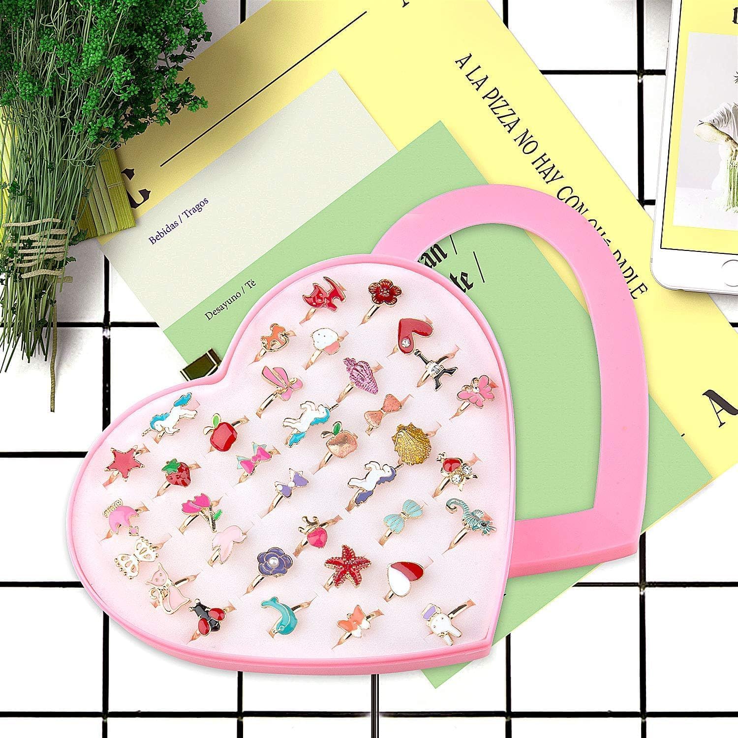 Caratteristiche Facile da regolare e abbastanza forti. 36 Pezzi Ragazza per Bambini Anelli con Vetrina a Forma di Cuore, Anello per Bambini Vesti e Gioca. Molto adatto come regalo, ideale per principessa vestire gli accessori di costume per le bambine principessa. Specifiche Materiale: Lega Peso del Pacco: 87g Dimensione del Pacchetto: 15×12×2.5 cm / 5.91×4.72×0.98 pollice Elenco dei Pacchetti 36 x Cartoon Bambini Anello 1 x Scatola Rosa a Forma di Cuore
