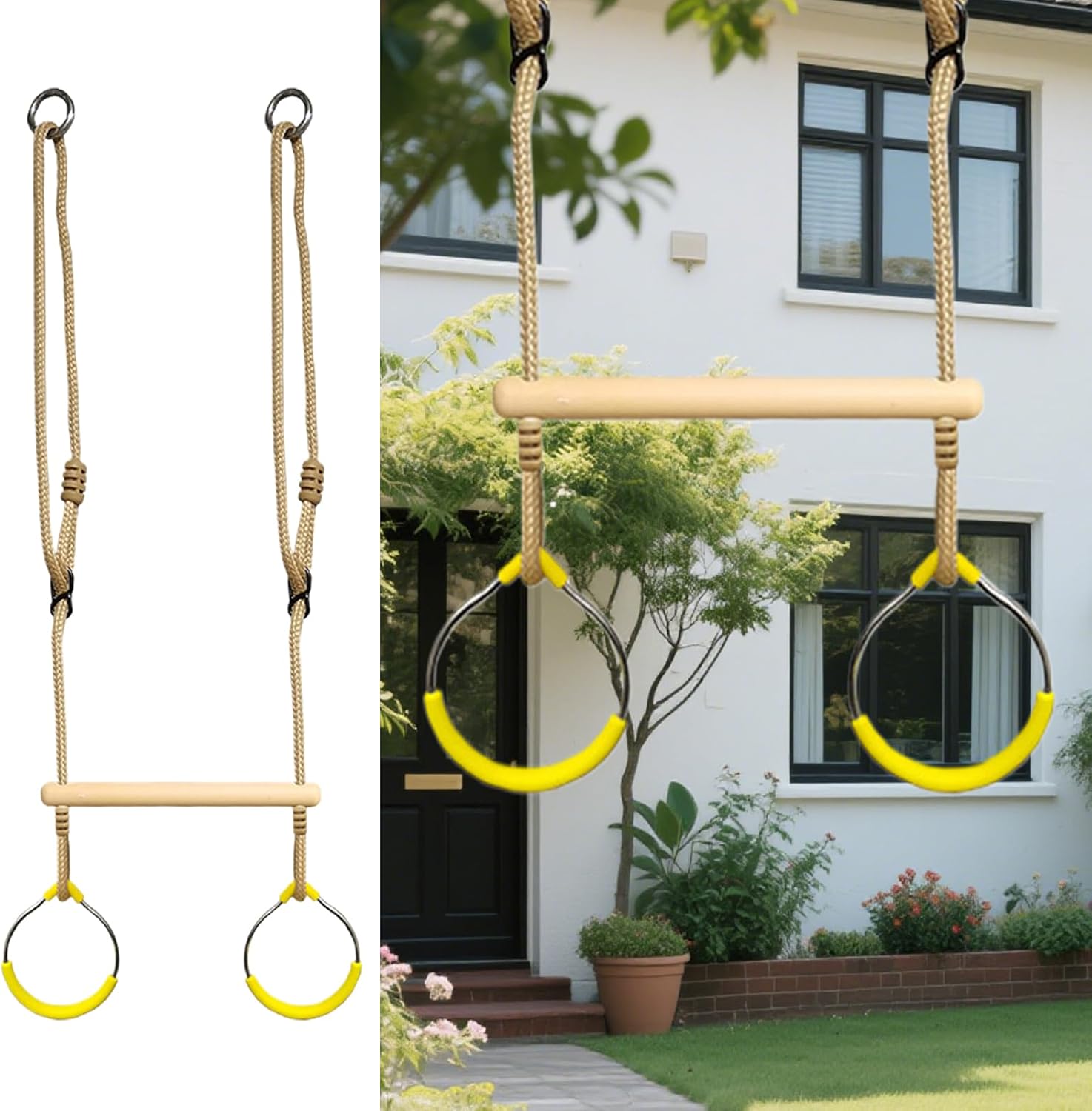 Montaggio Rapido: di fissaggio non invasivo e rispettoso della corteccia degli alberi, design modulare regolabile per assemblaggio immediato senza forare, garantisce semplicità d'uso con installazione in pochi minuti Durabilità Estesa: Il telaio metallico ad alta resistenza assicura robustezza in ambienti esterni, supporta l'uso frequente mantenendo stabilità su tronchi/porte, con componenti anti-usura per lunga durata senza compromettere sicurezza o funzionalità Design Esercizio Giocoso: Con funzionalità a doppia modalità di presa oscillante, supportano miglioramento controllo corporeo, attività fisica ludica e coordinazione del core, potenziando lo sviluppo della superiore durante l'uso regolare. Esperienza Sensoriale: Progettati per stimolare l'equilibrio, gli anelli altalenanti promuovono lo sviluppo motorio e la consapevolezza spaziale durante le transizioni attivo-passive, intensificando il divertimento esplorativo e le interazioni sensoriali Occasioni Multiple: Grazie alla compatibilità con più pali e struttura modulare, il set offre un supporto generico che si adatta a vari scenari, creando aree pronte per campeggio in giardino con opzioni di regolazione versatile per giochi dinamici.