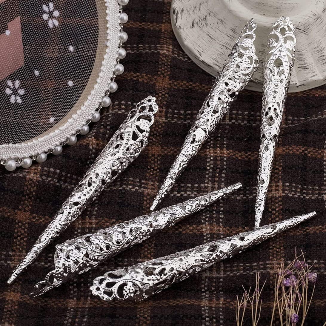 La confezione include: Confezione da 10 anelli per unghie con punta per unghie. Materiale premium: questi anelli per unghie con punta per dito sono realizzati in materiale di alta qualità, non sbiadito, antiruggine e per un uso prolungato. Tienilo lontano dall'acqua quando lo indossi o lo metti da parte. Soddisfazione garantita al 100%: se sei preoccupato per qualcosa dopo averlo utilizzato, contattaci direttamente e faremo la cosa giusta per te. Meraviglioso regalo decorativo: questi anelli per unghie hanno un design e un aspetto eleganti e di solito sono apprezzati da attrici o persone interessate al vecchio gioco di ruolo in costume. Squisito aspetto delle unghie della regina: questo set di artigli per unghie in argento è appositamente progettato come la regina nei tempi antichi, estremità lunga e affilata con finitura color argento, molto impressionante e attraente tra le persone.