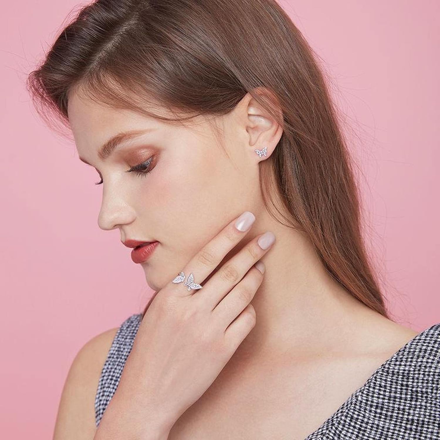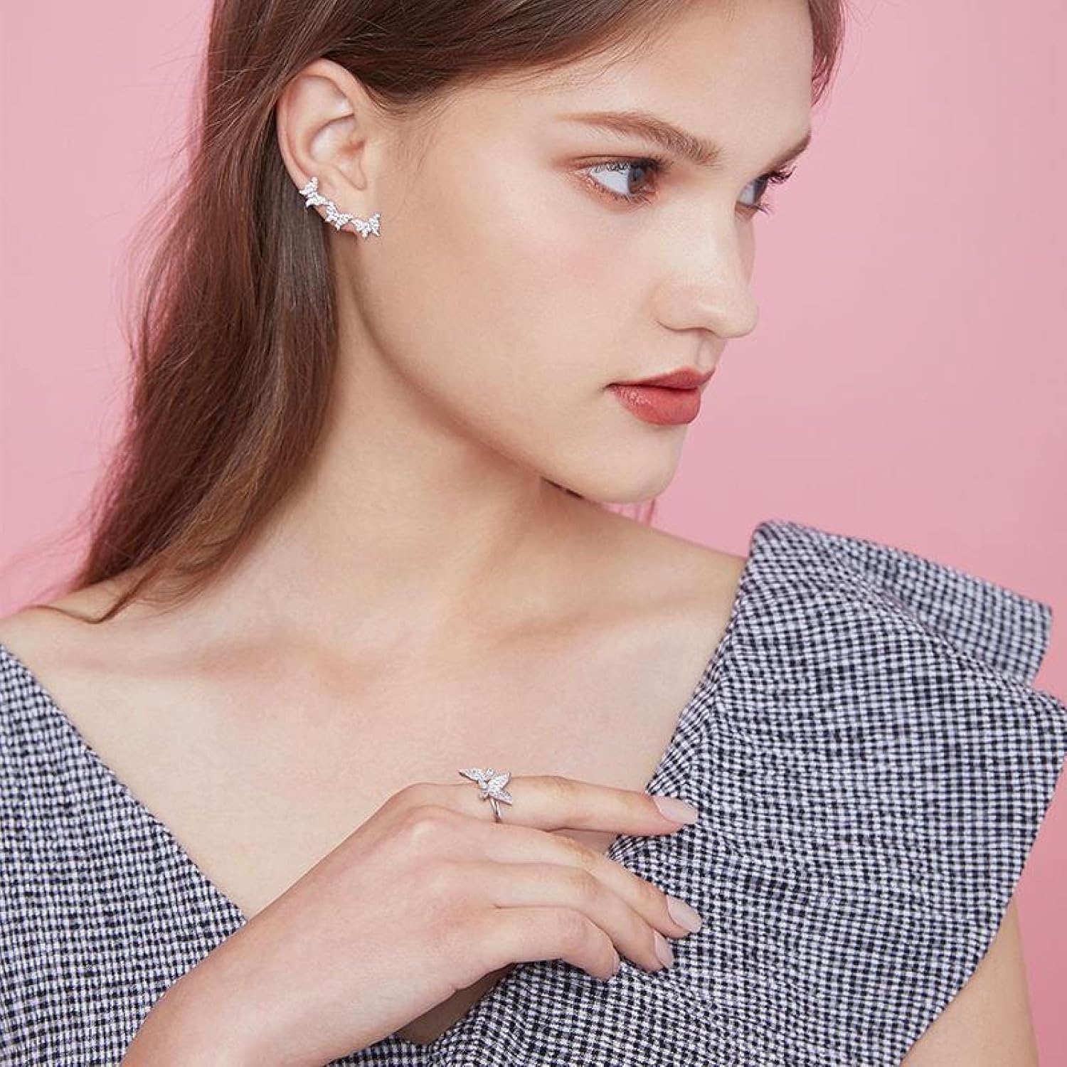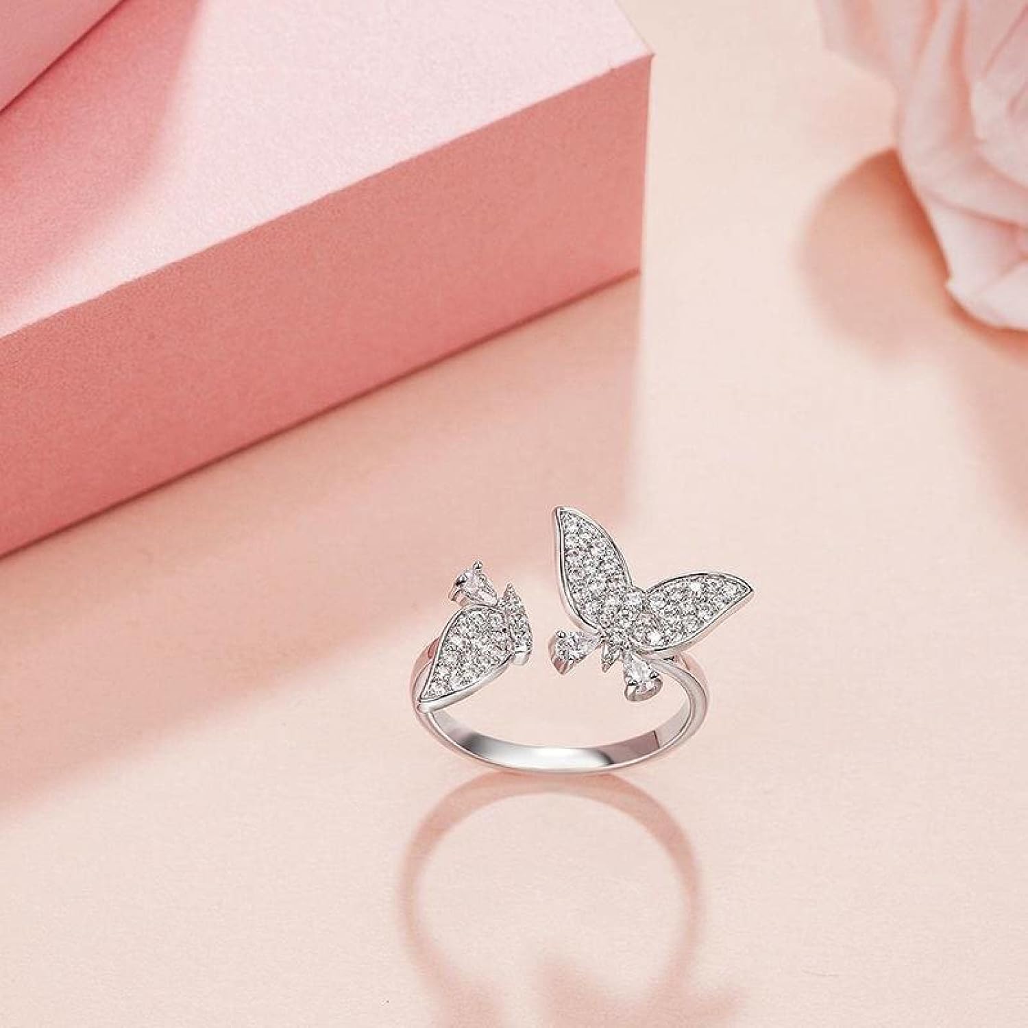 Anelli regolabili con farfalla in zirconi in argento sterling, gioielli for feste irregolari