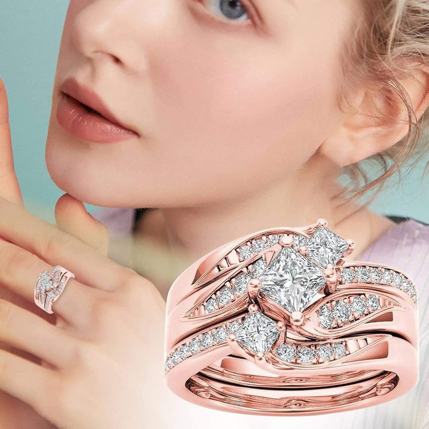 Anello di fidanzamento per matrimonio da donna con diamanti, anello di fidanzamento in oro rosa con diamanti d'imitazione, gioielli per le donne Anello di fidanzamento da donna con diamanti incastonati Anello in zircone con diamanti finti in oro rosa Materiale: lega di alluminio Colore: come mostra l'immagine, Dimensioni confezione: 0x0x0 cm,