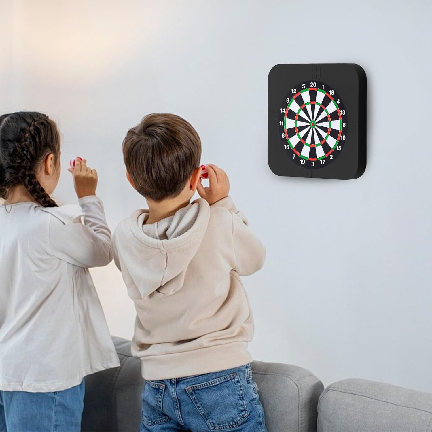 Materiale di alta qualità: l'anello per freccette è realizzato in schiuma EVA di alta qualità. La schiuma rigida ispessita è durevole e robusta. La sua buona struttura elastica assicura che le freccette e la parete siano protette da danni, puoi lanciare con fiducia. Facile installazione: la struttura in quattro pezzi del bordo del bersaglio consente un montaggio rapido senza la necessità di ulteriori fissaggi o staffe. L'anello surround è rimovibile per una facile conservazione e comodità in movimento. Adatto per tutti i livelli di abilità: diametro interno di 45 cm, lunghezza del bordo esterno di 66,3 cm, spessore di 2,5 cm, è abbastanza spesso da contenere freccette con punta in acciaio, fornendo protezione sia per principianti che per professionisti Misura universale per tavole standard: la protezione da parete per freccette è progettata per adattarsi a tutti i bersagli di dimensioni standard con facilità, offrendo una protezione completa senza ostacolare il gioco. Uso versatile: questa protezione da parete per bersaglio è perfetta per vari ambienti, tra cui case, bar, sale giochi e club. Offre un'esperienza di gioco sicura e piacevole per adulti, rendendolo ideale per giochi di festa, giochi di gruppo e attività divertenti per adulti e famiglie.