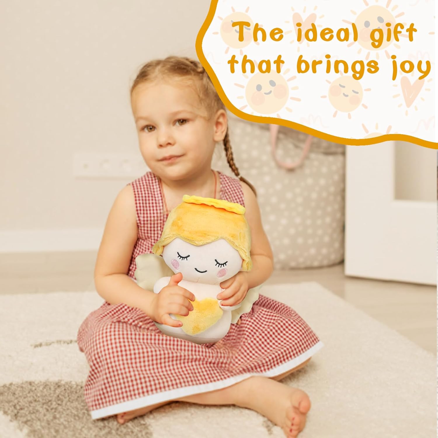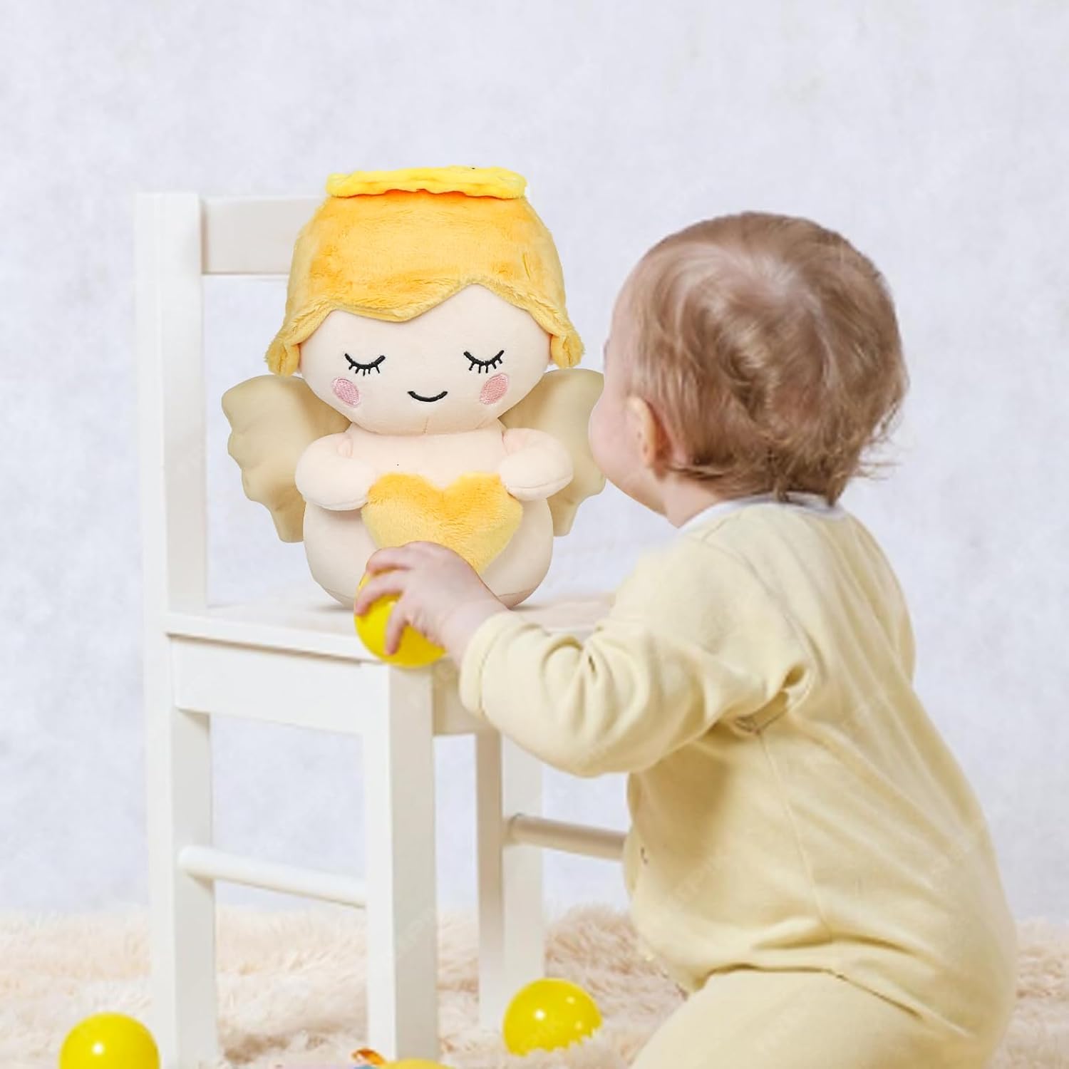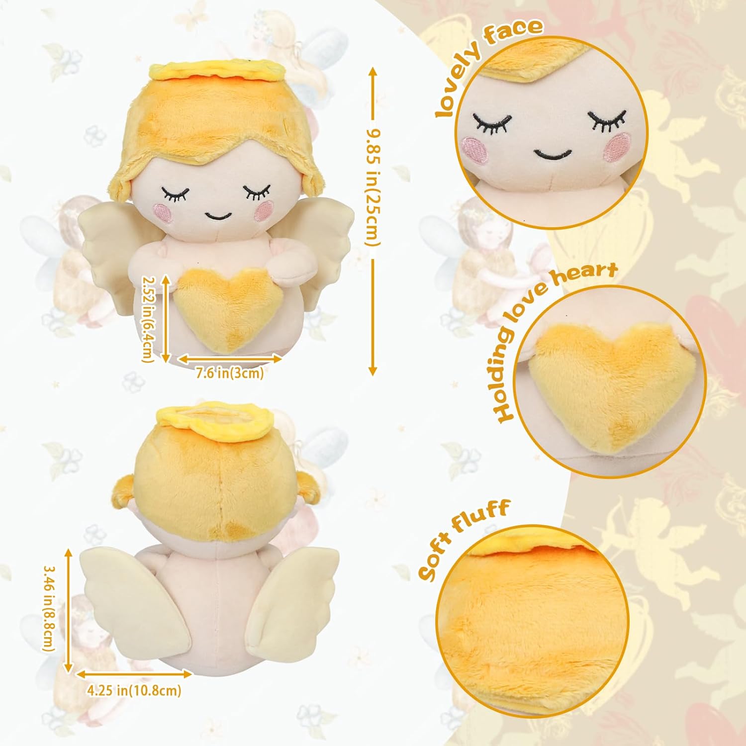 Caratteristiche del design: simpatico angelo custode in peluche con morbide ali bianche e accessorio a forma di cuore, perfetto per coccolarsi e presentare Regalo ideale: ideale per battesimi, feste religiose o come regalo significativo per bambini di tutte le età Animale coccoloso: il materiale morbidissimo e morbido rende questa bambola un compagno perfetto per dormire Versatile: può essere utilizzato sia come decorazione che come giocattolo, ideale per la cameretta dei bambini o per giocare Adatto all'età: accuratamente progettato per essere sicuro e divertente per i bambini di tutte le età, un ricordo senza tempo