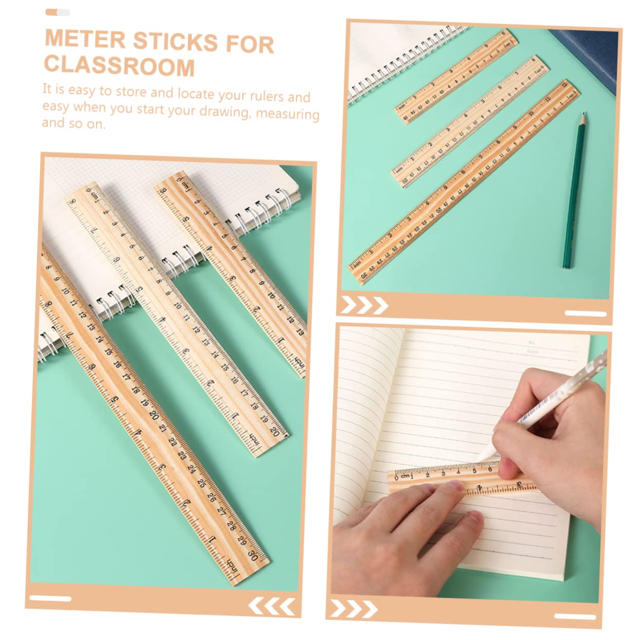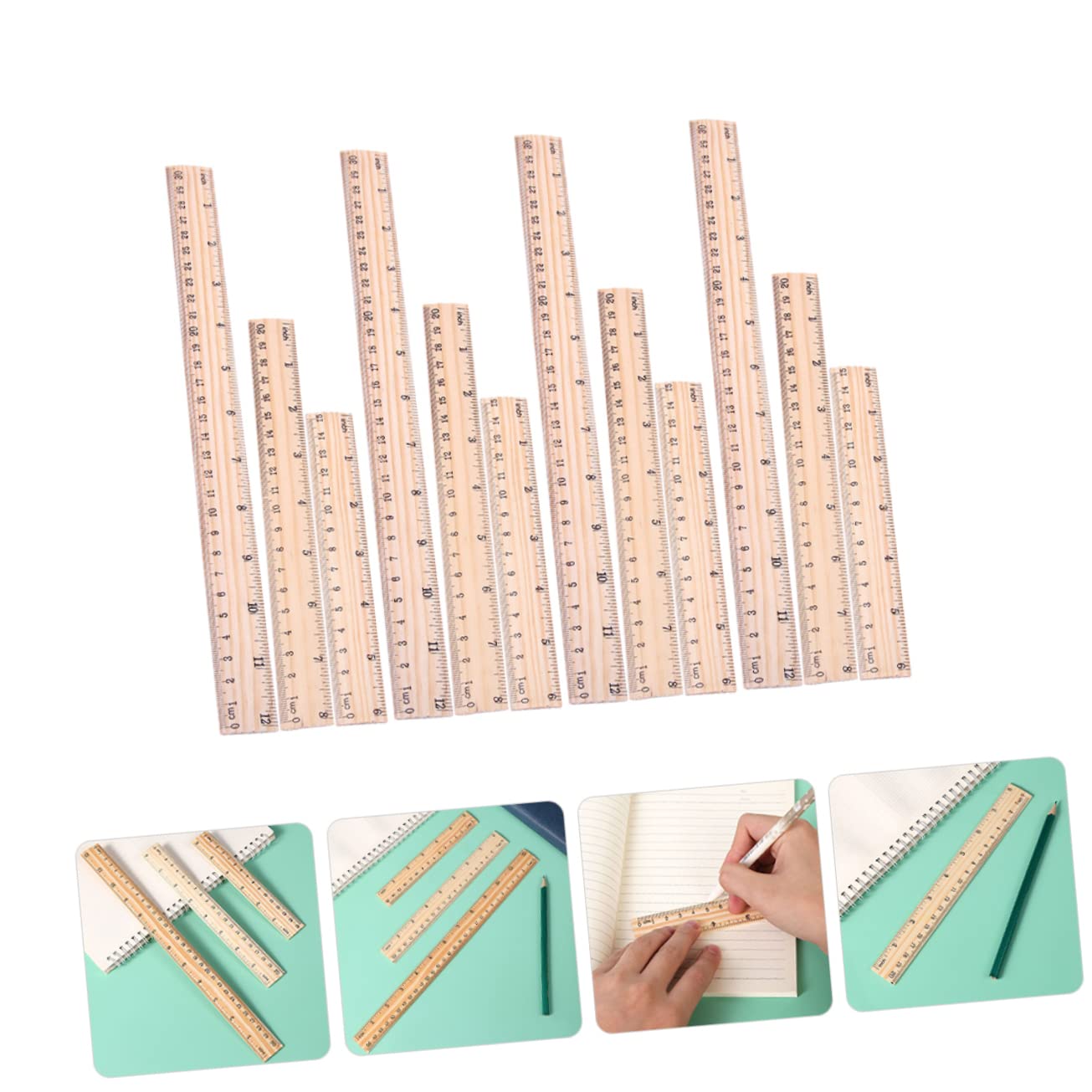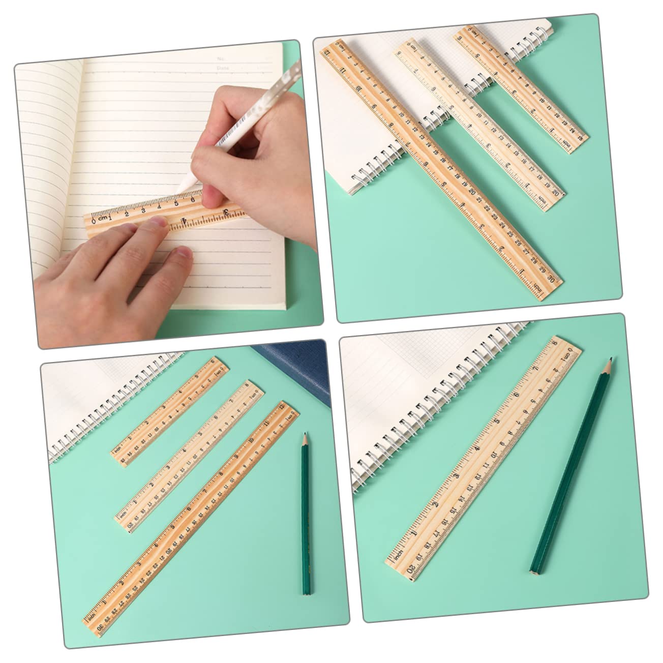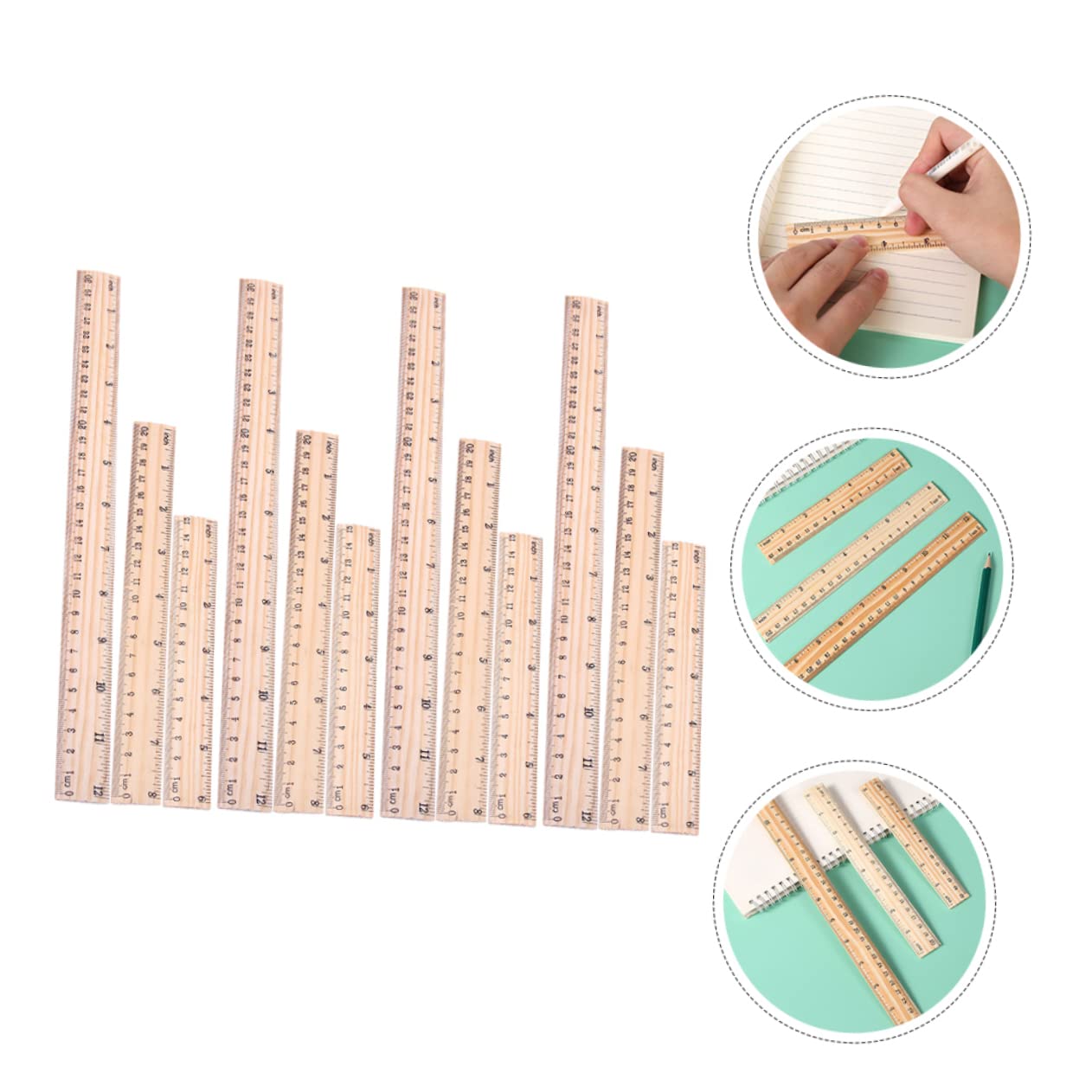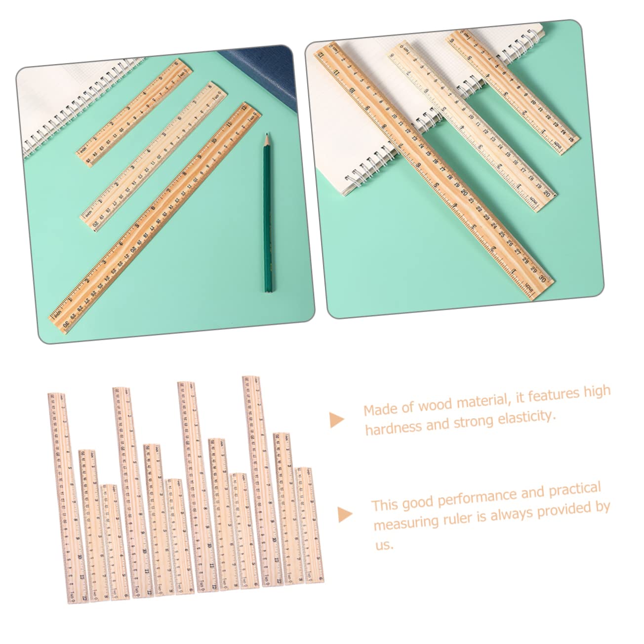Righelli per ufficio: sono facili da riporre e individuare, e facili da usare quando inizi a disegnare, misurare e così via, metri per la classe Righelli per l'apprendimento: il righello in legno può essere utilizzato nel disegno, nel taglio dritto, nell'insegnamento, nell'ingegneria e in altri campi, righelli con bordi dritti Accessorio per studenti: il righello rimane stabile durante l'uso e impedisce all'inchiostro di penetrare sotto il righello e di rovinare il lavoro, righelli per pittura Righelli di misurazione: righello in legno ispessito, resistente all'usura, non facile da rompere, può essere utilizzato a lungo, righelli dritti portatili Righelli dritti in legno: robusti, resistenti e resistenti all'usura, questo pratico righello in legno non deforma e non rompe facilmente, righello dritto multifunzione