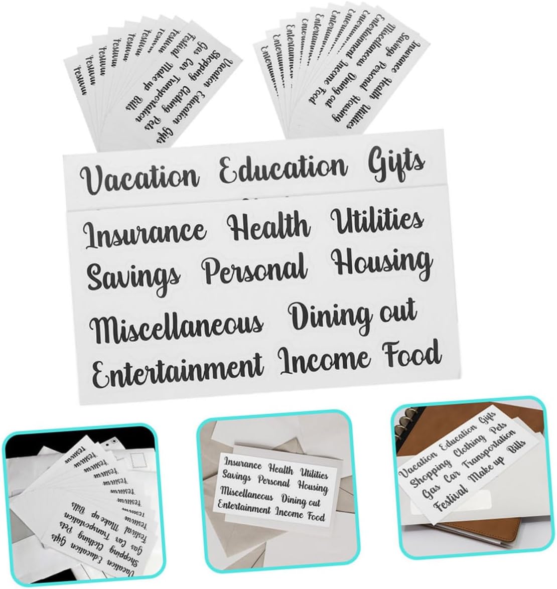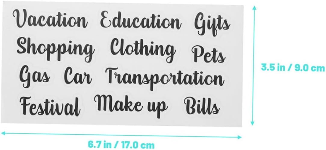 Accessorio per etichettatura: puoi anche incollarli su un quaderno per un'etichettatura decorativa e persino pubblicarli sul tuo cellulare, adesivo per il budget domestico Etichette per buste portadenaro piccole: adottano un design del carattere unico, con un aspetto classico nero, etichette per buste portadenaro molto pratiche Adesivo budget multifunzione: aumenta la tua motivazione a rispettare il budget, design del carattere unico, combinazione, etichetta adesiva Etichetta economica multifunzione: l'etichetta economica del di buste tascabili è realizzata in materiale adesivo in pvc, che può essere utilizzato come piccola etichetta economica Etichette compatte per buste portadenaro: sono un valido aiuto per distinguere le voci di bilancio, ti aiutano a gestire i tuoi articoli, etichette adesive per uso domestico