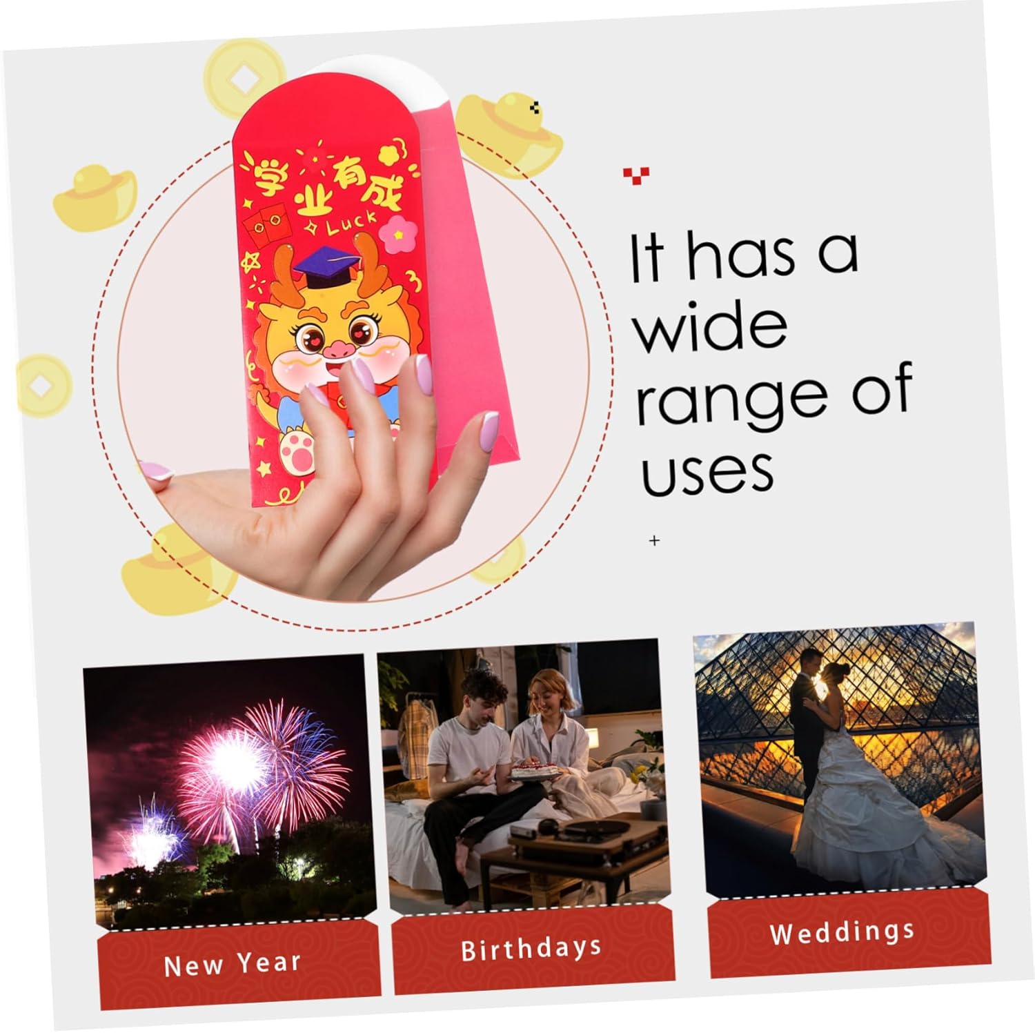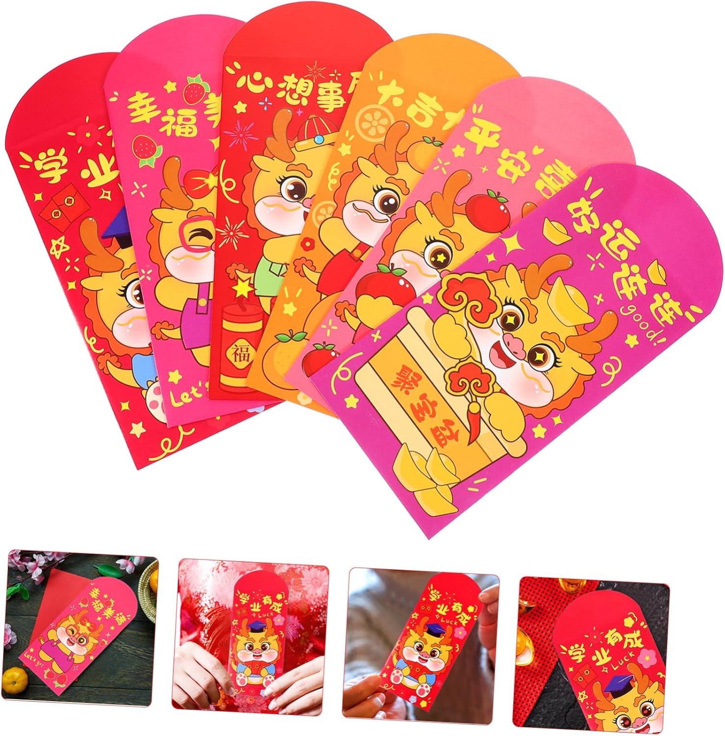 Pacchetto rosso per la festa di - con caratteri cinesi di buon auspicio e motivi di draghi, per creare un'atmosfera festosa, augurandoti felicità e salute durante il anno, pacchetti rossi di carta drago Buste portadenaro: sorprendi i tuoi amici o familiari con queste accattivanti buste rosse dell'anno del drago, busta di carta rossa Sacchetto per soldi: il rosso è il cinese e ritiene che una busta rossa porti fortuna alla che la riceve, cartoni animati pacchetti rossi Pacchetti rossi per feste: ogni busta rossa augura al destinatario felicità, prosperità, buoni auguri, ricchezza e così via, significa anche i migliori auguri dagli anziani alle giovani generazioni, pacchetto rosso dei cartoni animati Sacchetto di soldi 2024 - grazioso motivo a drago, queste buste rosse in stile cinese sono creative e delicate, piene di atmosfera di capodanno, buste rosse