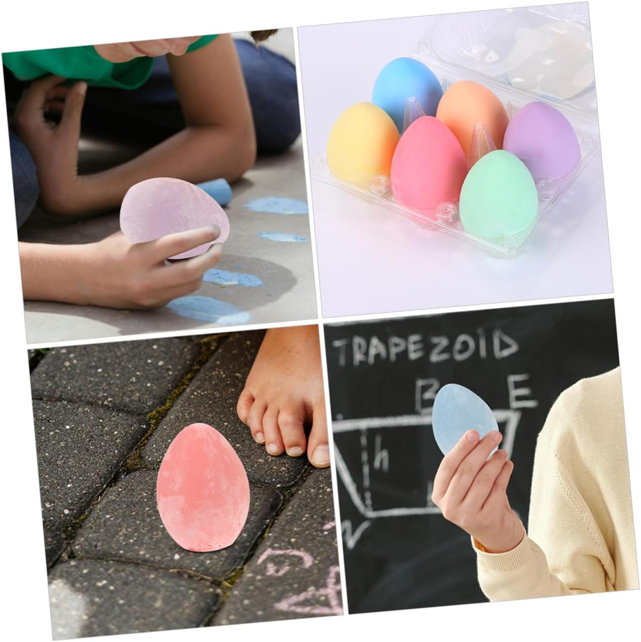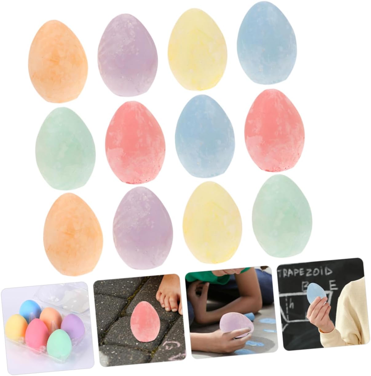 Gesso da marciapiede per: l'affascinante forma a uovo di gallina del gesso aggiunge ulteriore eccitazione e divertimento per, Gesso da marciapiede a forma di uovo: il gesso robusto e durevole assicura che possa essere utilizzato ripetutamente senza rompersi o consumarsi facilmente. Gesso da marciapiede senza polvere per: il gesso è comodamente portatile e ti consente di disegnare e scarabocchiare ovunque, sia all'interno che all'esterno. Gessetti Emozionante forma a uovo di gallina per un maggiore divertimento: presenta una divertente forma a uovo di gallina per aumentare il divertimento, gesso per bambini, gesso da strada lavabile per incoraggiare la creatività e l'immaginazione: promuove lo sviluppo del pensiero creativo e dell'immaginazione, uova di gesso per i più piccoli, gesso da pittura