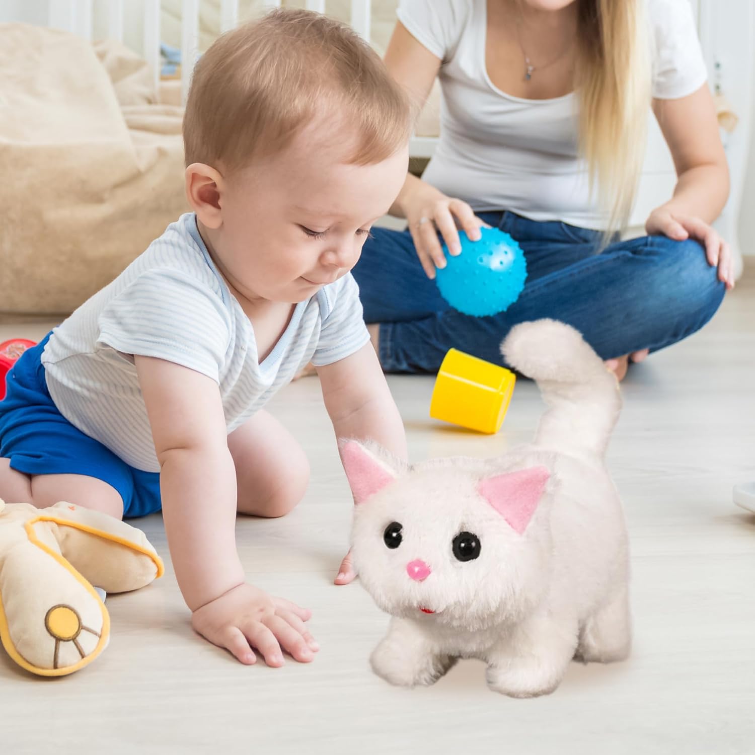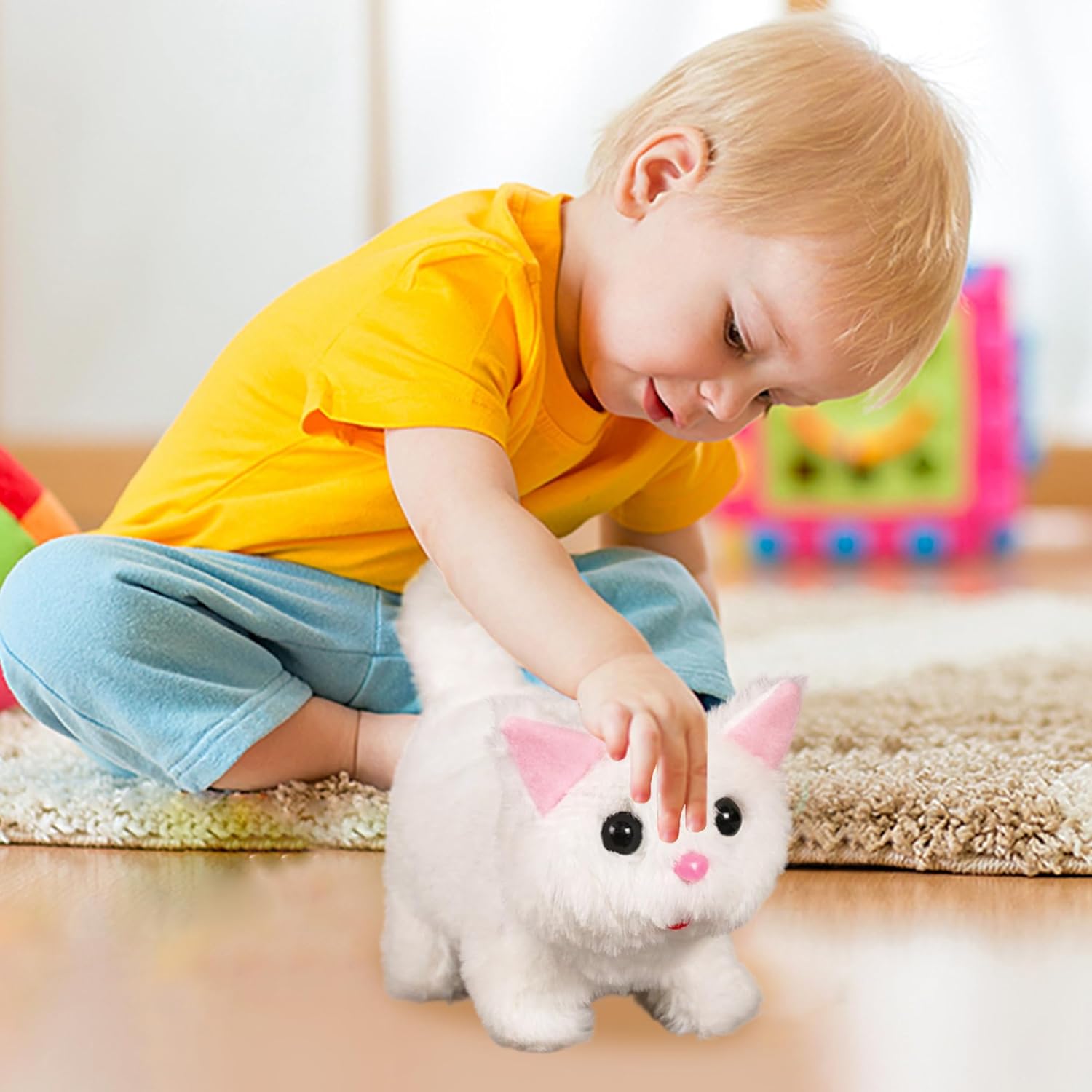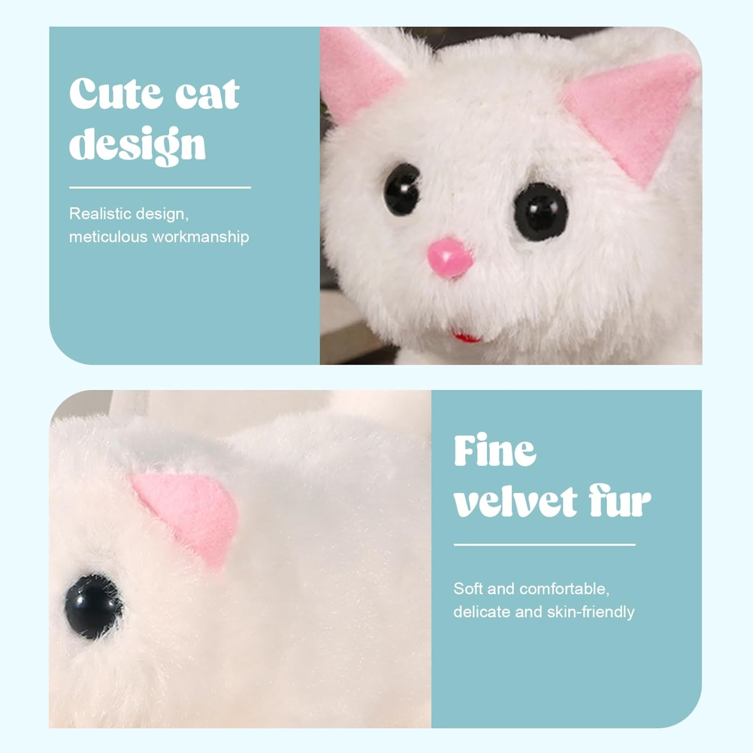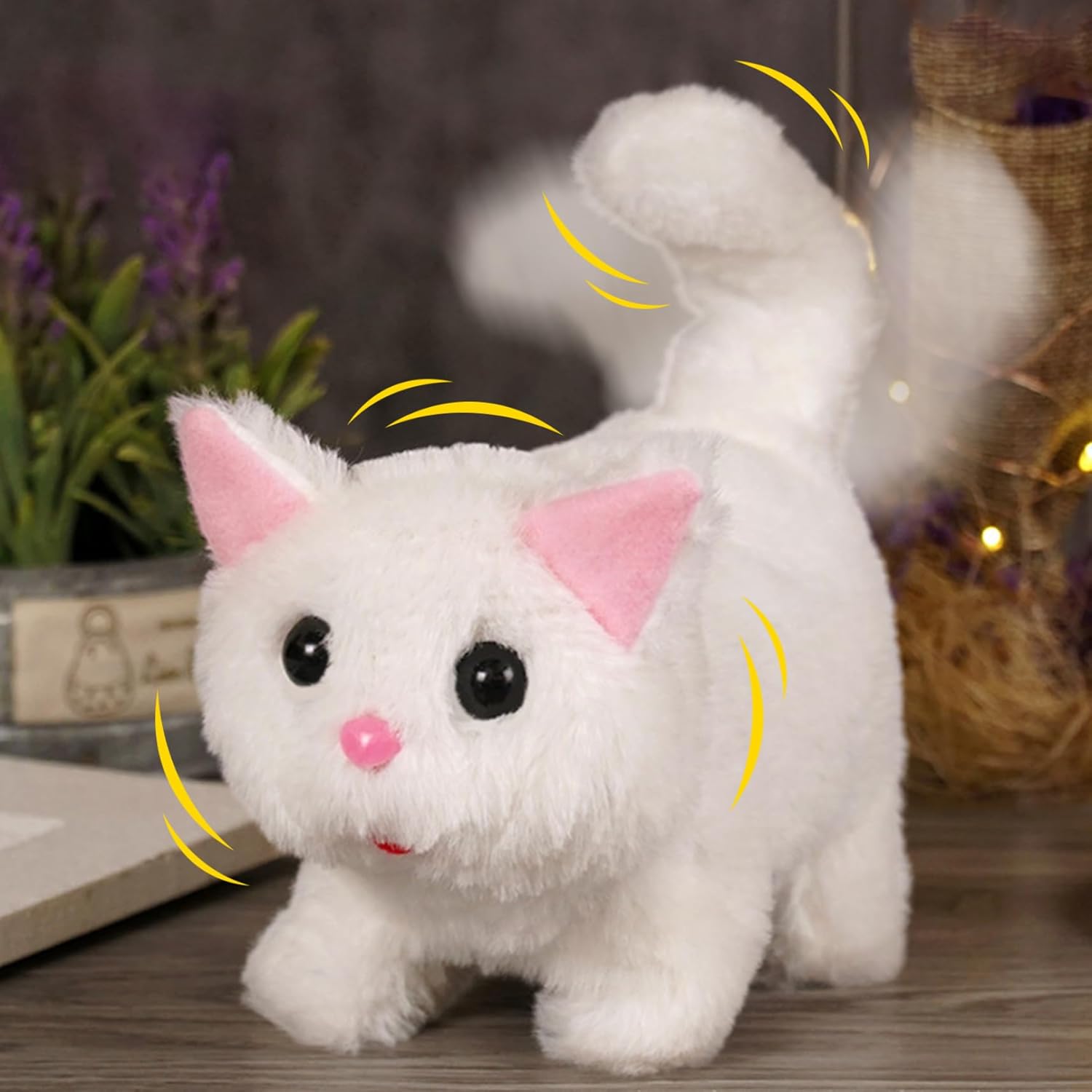 Comodità alimentata a batteria: alimentato da 2 batterie AA e dotato di un cacciavite per un facile accesso, questo giocattolo elettrico per gatti consente un funzionamento senza problemi e una configurazione rapida, offrendo ore di divertimento senza le interruzioni di un'installazione complicata. Materiale morbido: realizzato in poliestere, questo gatto di peluche è eccezionalmente morbido, sicuro e comodo al tatto, rendendolo ideale per i bambini da coccolare e divertirsi durante il gioco o prima di andare a dormire..La lavorazione stabile garantisce un divertimento duraturo. Regalo perfetto per tutte le età: che tratti di bambini, familiari o amanti dei gatti, questo incantevole peluche elettrico per gatti è un regalo premuroso e unico, ideale per compleanni, vacanze o occasioni speciali, che porterà sorrisi e calore. Esperienza interattiva realistica: questo animale di peluche per gatti presenta azioni realistiche di camminata, miagolio e scodinzolamento, creando un'interazione coinvolgente e realistica con l'animale domestico che delizia sia i bambini che le famiglie..Perfetto per dare vita a un compagno giocoso senza la necessità di una vera cura dell'animale domestico. Educativo e divertente: questo gatto robot interattivo aiuta i bambini a sviluppare capacità emotive, responsabilità e gioco fantasioso, rendendolo un ottimo strumento per lo sviluppo della prima infanzia pur intrattenendoli.