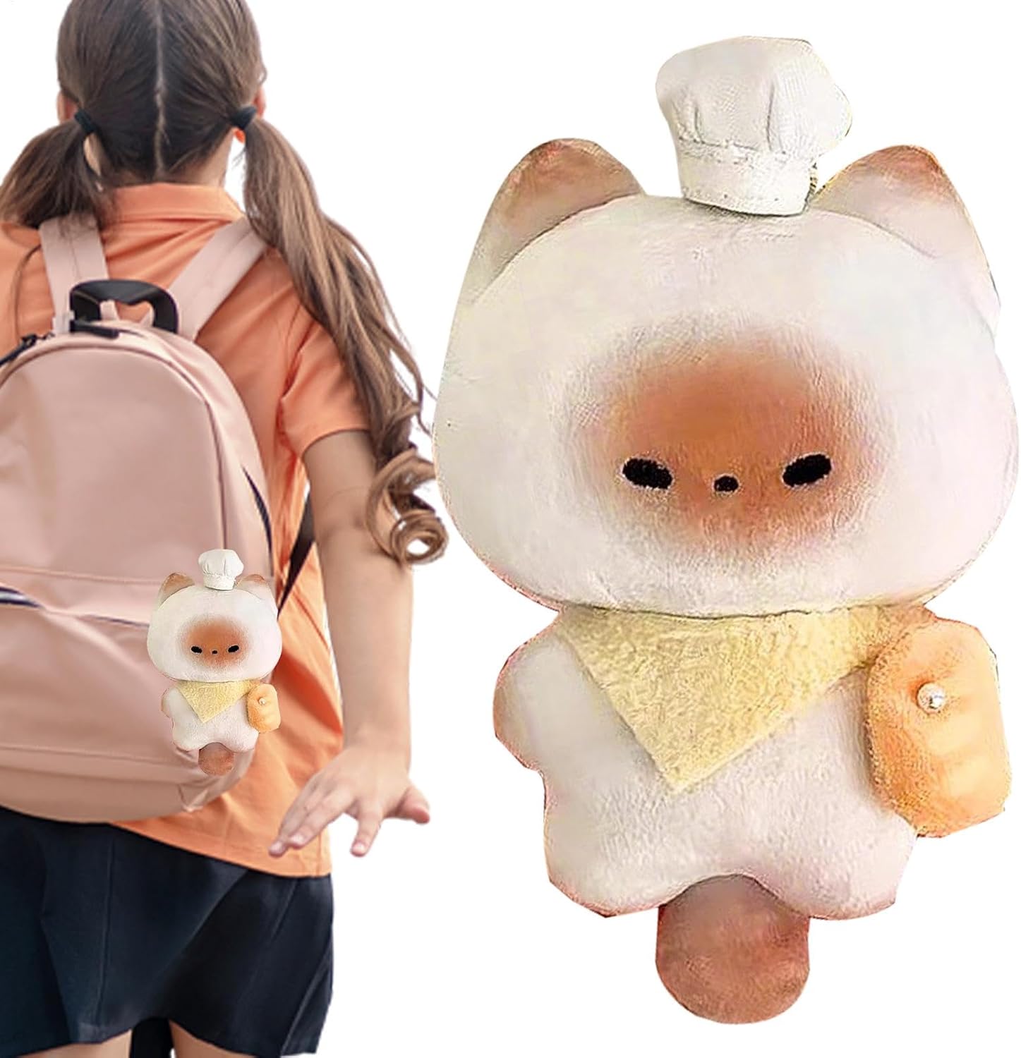 Appello stravagante: questo animale di pezza per gatti è concepito come uno chef eccentrico, con dettagli dalle orecchie alle zampe realizzati con cura e completati da un mix di gatti e panini al vapore. Il suo piccolo cappello da chef e il suo grembiule si aggiungono alle sue caratteristiche uniche. Peluche accogliente: il materiale morbido e peluche del nostro animale di peluche per gatti offre un'eccellente esperienza tattile quando abbracciato, appoggiato o posizionato su uno zaino scolastico. Sia l'imbottitura interna che quella esterna sono rispettose dell'ambiente e garantiscono elevato comfort e sicurezza per i vostri bambini. Uso versatile: il nostro animale di peluche per gatti non è solo adorabile, ma funge anche da accessorio versatile. Grazie alle sue dimensioni moderate, è comodo da indossare per i bambini come documento d'identità personale univoco e si attacca facilmente a borse per libri, portachiavi e altro ancora. Promuove la connessione emotiva: l'animale di pezza del gatto incoraggia l'interazione genitore-figlio attraverso il gioco di ruolo, creando un modo divertente e interessante per le famiglie di costruire legami. Genitori e figli possono lavorare insieme per creare trame fantasiose che ispirano creatività e abilità pratiche rafforzando al contempo la loro connessione emotiva. Regalo premuroso: porta gioia ai compleanni e alle vacanze con questo peluche per gatti, un regalo toccante che infonde creatività e bellezza trasmettendo cura e benedizione ai tuoi cari