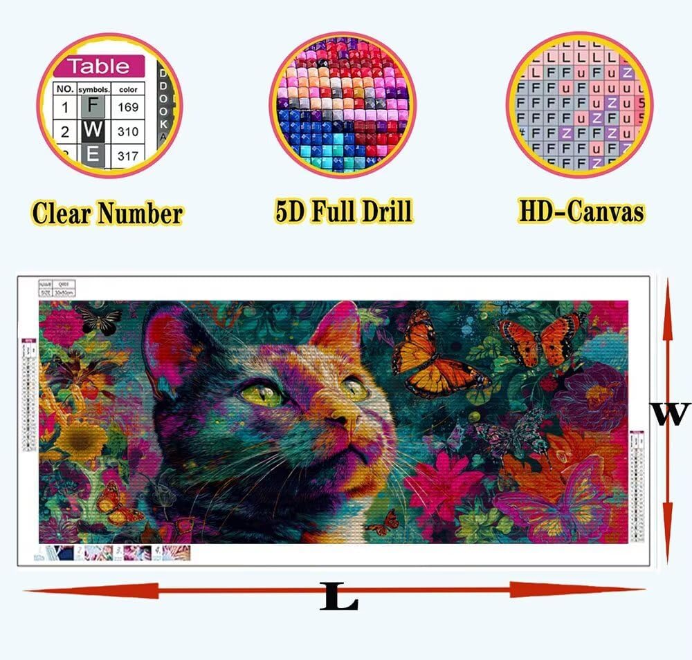 Animale Diamond Painting Kit Completo, Gatto Diamond Painting Bambina 40x80cm DIY Full Drill Crystal Art , 5D Bambini Per Pittura Diamante Adulti Principianti Per Pittura Diamante Wall Decor A-U356