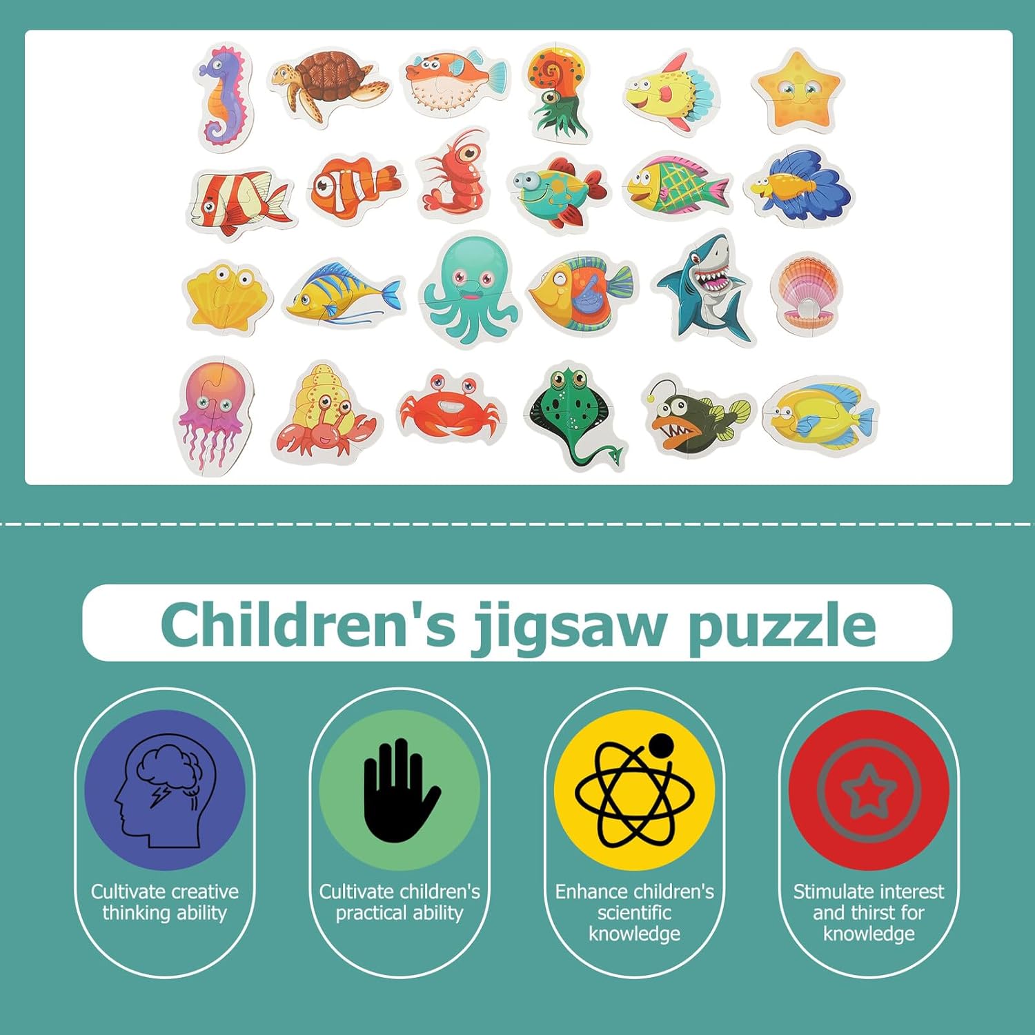 Puzzle per bambini: tu con i bambini piccoli e i tuoi amici, combina il giocattolo puzzle e sviluppa la tua capacità di cooperazione, puzzle per bambini, giocattoli educativi per i più piccoli: il materiale cartaceo è sicuro e affidabile, la superficie liscia impedisce alle mani del bambino di farsi male, puzzle di carta con animali marini, giocattoli per bambini: realizzati in materiale cartaceo, sicuro ed eccellente, durevole a lungo, puzzle con animali dell'oceano per: puoi usare questo puzzle con i tuoi bambini, che può rafforzare la tua relazione genitore-figlio, puzzle di animali per giocattoli puzzle di cartoni animati di animali: unico e interessante i metodi di apprendimento stimolano la creatività dei bambini e migliorano la loro capacità di pensiero logico, giocattoli in età prescolare