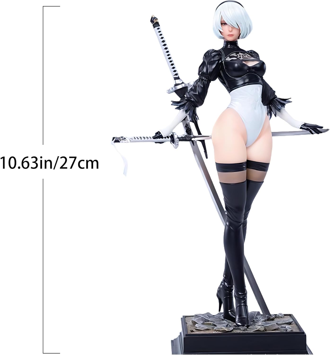Design: la statuetta dell'anime 2B ha un bellissimo abito bianco e nero che la rende un'attrazione in qualsiasi collezione o decorazione ALTA STABILITÀ La statuetta misura 27 cm e garantisce un'elevata stabilità, perfetta per la presentazione senza preoccuparsi che si ribalti Materiale: realizzato in materiale PVC, garantisce bellezza e stabilità durature pur mantenendo i colori vivaci nei personaggi anime 2B e 9S Scenari di utilizzo: questa statuetta anime è una scelta eccellente per regali per feste, compleanni o occasioni speciali e delizierà ogni amante degli anime della tua vita Protezione post-vendita: ci impegniamo a fornire un eccellente servizio clienti. Se avete domande o dubbi durante il processo di acquisto, non esitate a contattarci